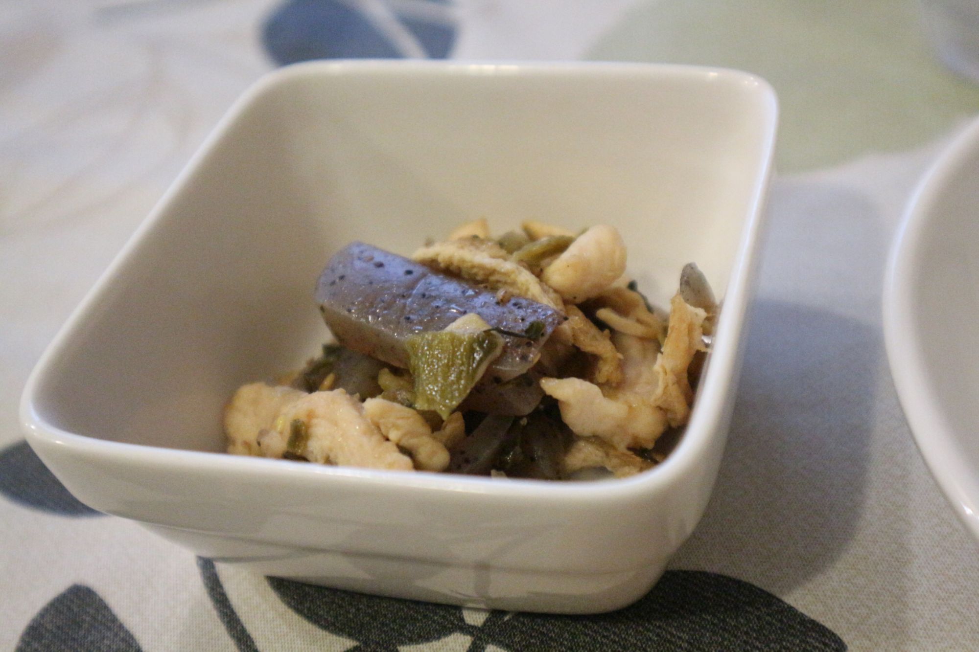 こちらのメニューも初めて食べました。大きな唐辛子のようなパリパリした野菜は初めて食べる味と食感で、思ったより辛くもなくみんな美味しいと喜んでいました。