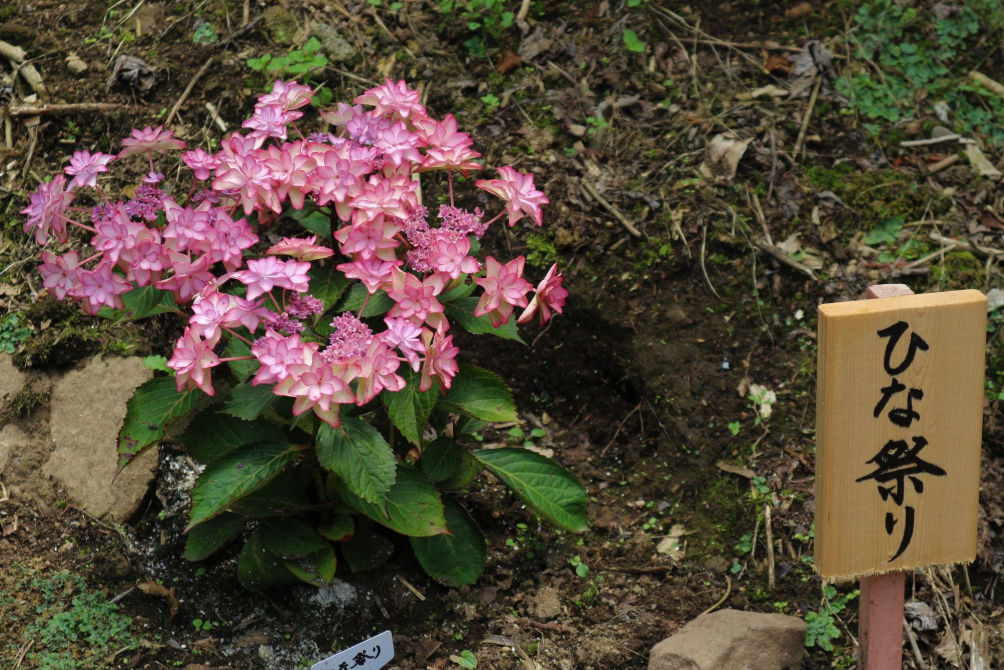 あじさいには名前が書かれた立て札がついていて、それぞれ名前と花両方を楽しめます。