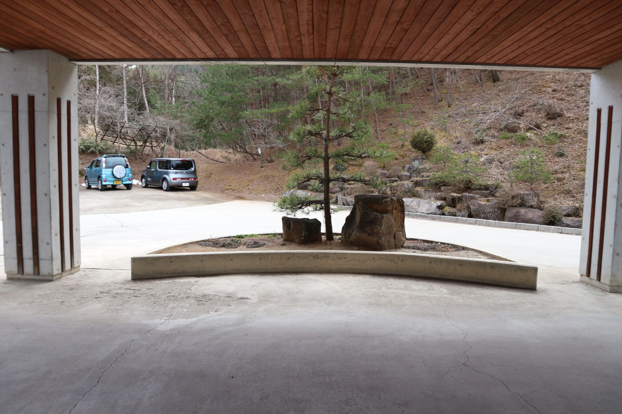 四賀化石館から国道143号線に出て北へ進みます。5分ほど走ると右手に看板があるので右折して登って行きます。