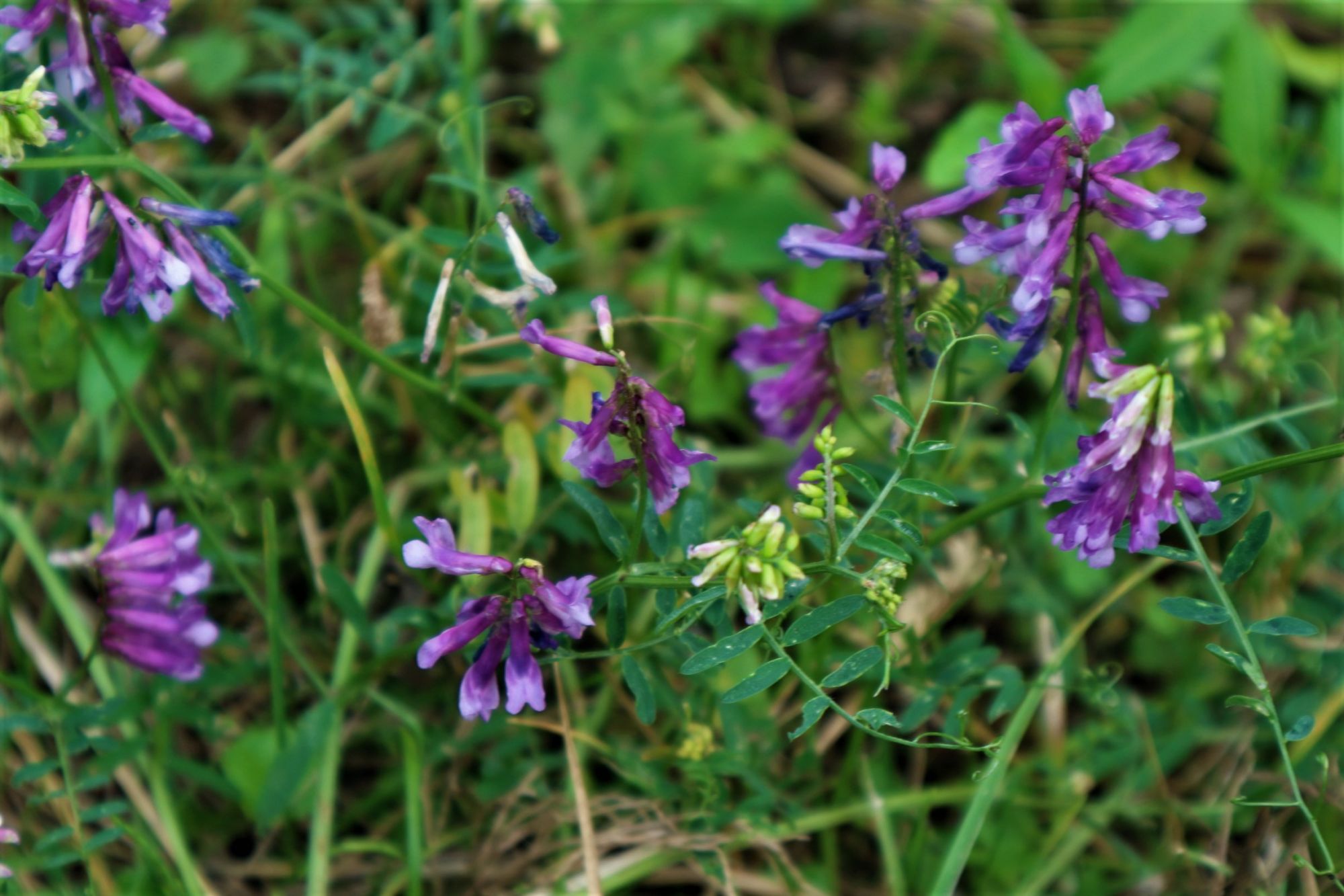 左の花3は、この数年でかなり増殖している 草刈り厄介で手を焼いている「ナヨクサフジ」です。