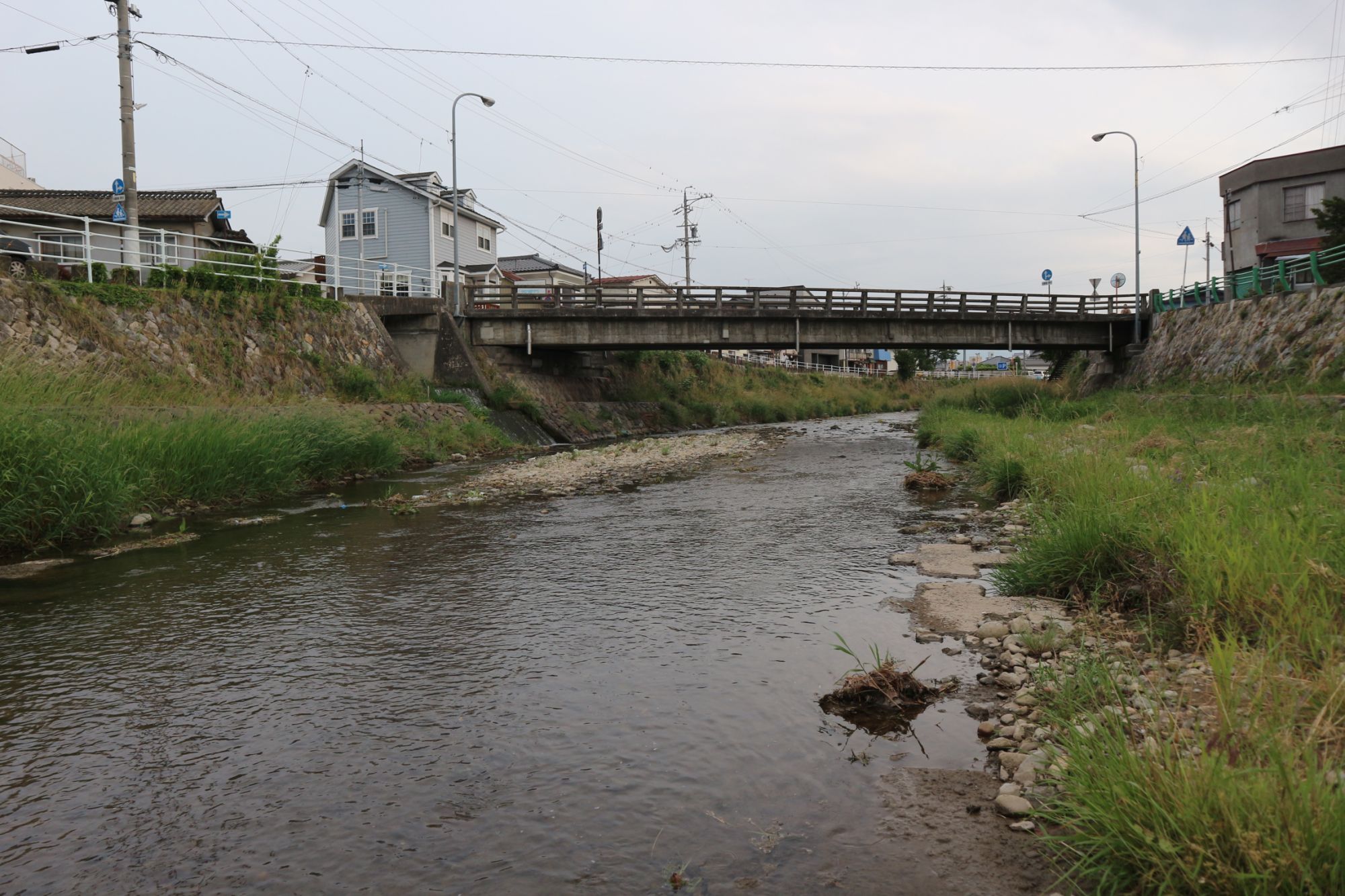 清水橋から上流へ行くに従い、河原の幅が広くなります。