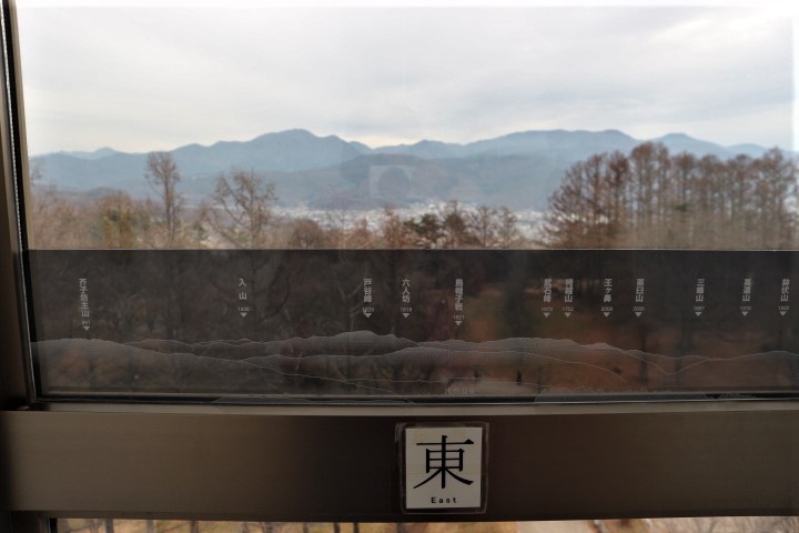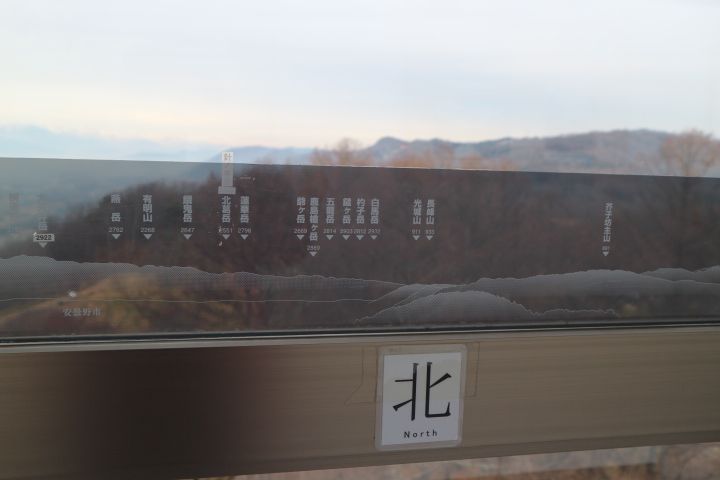 東西南北に山の名前が入った案内が貼られているので、名前を確認しながら見ることが出来ます。