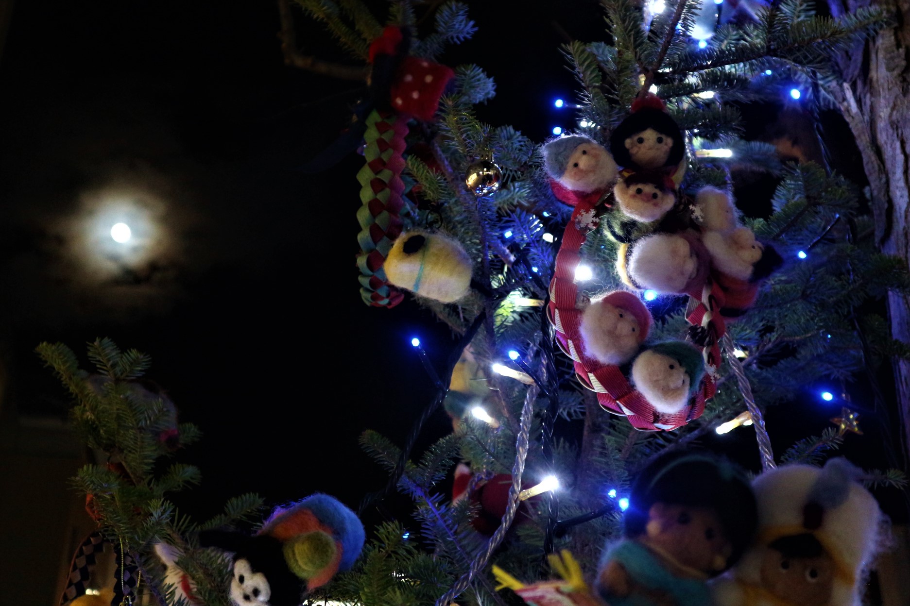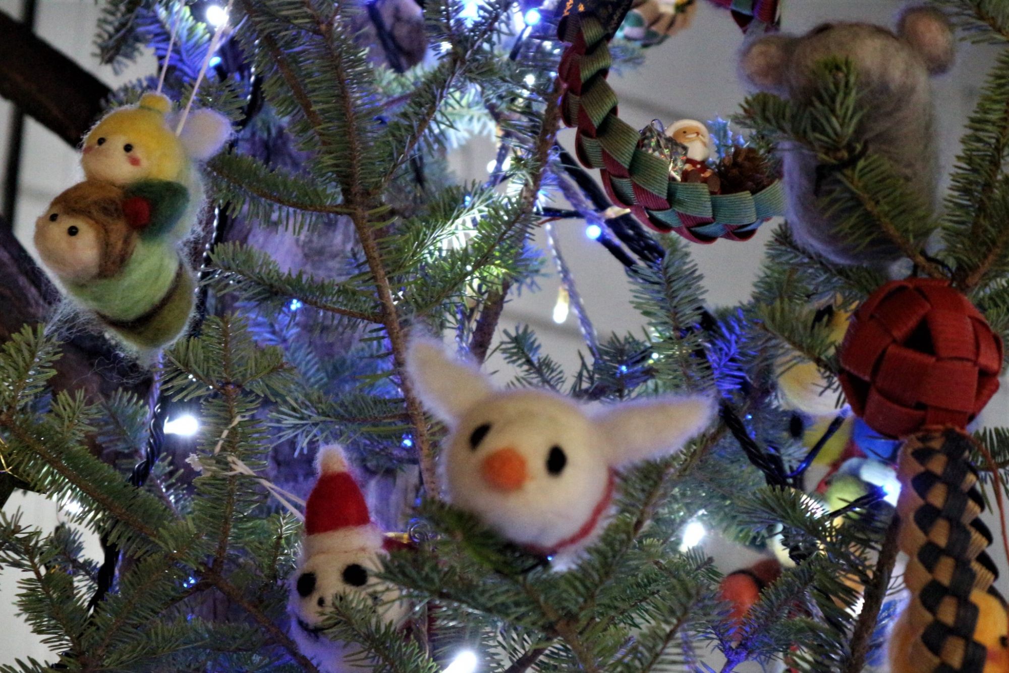 それぞれ工夫を凝らしたオーナメントが吊るされたクリスマスツリー