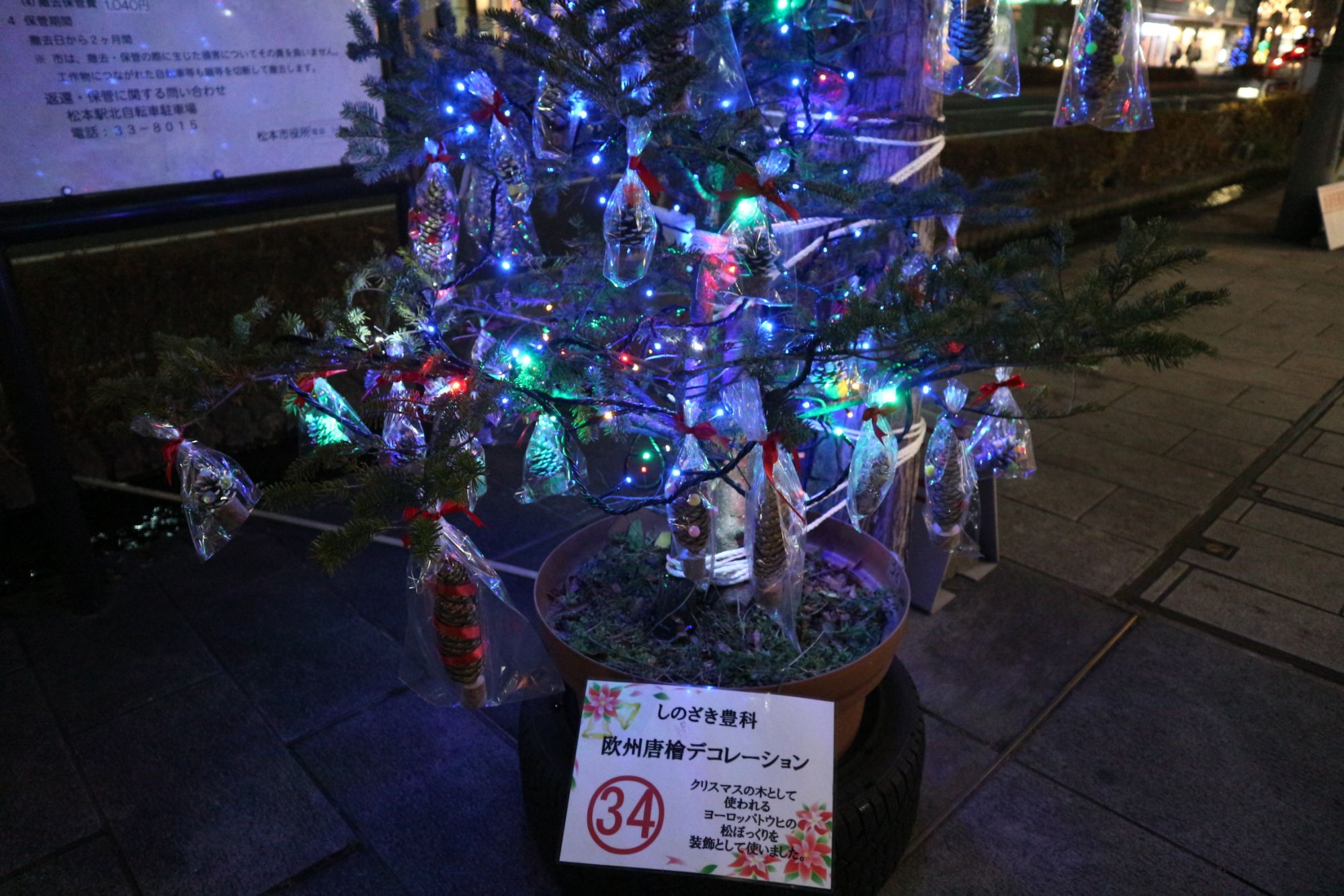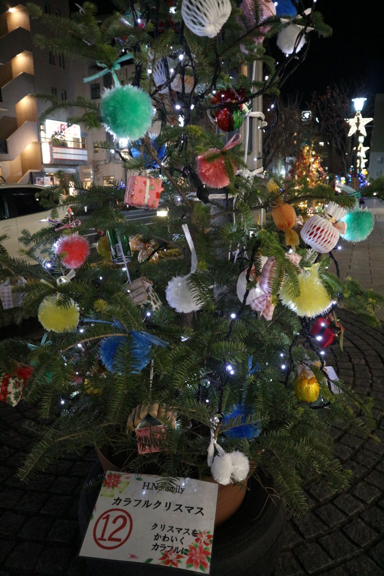 クリスマスツリーコンテスト伊勢町2019 手づくりのツリーが並んでいます!