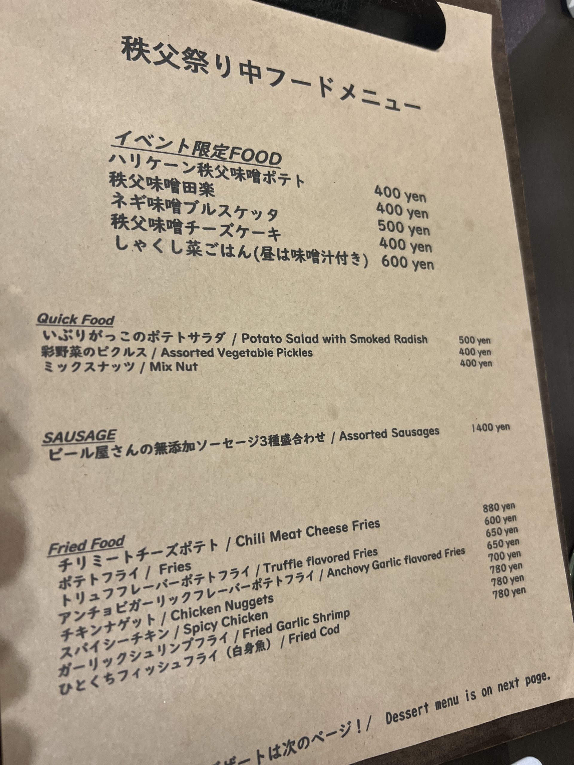 秩父麦酒Chichibu beerさんのクラフトビールが3連休の3日間提供されました。