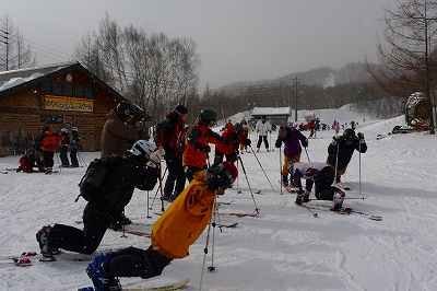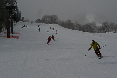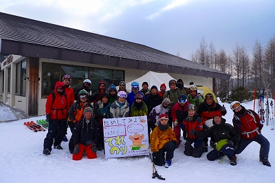 その後は、みんなで楽しく踵があがる不思議な感覚のスキーで滑るだけです。