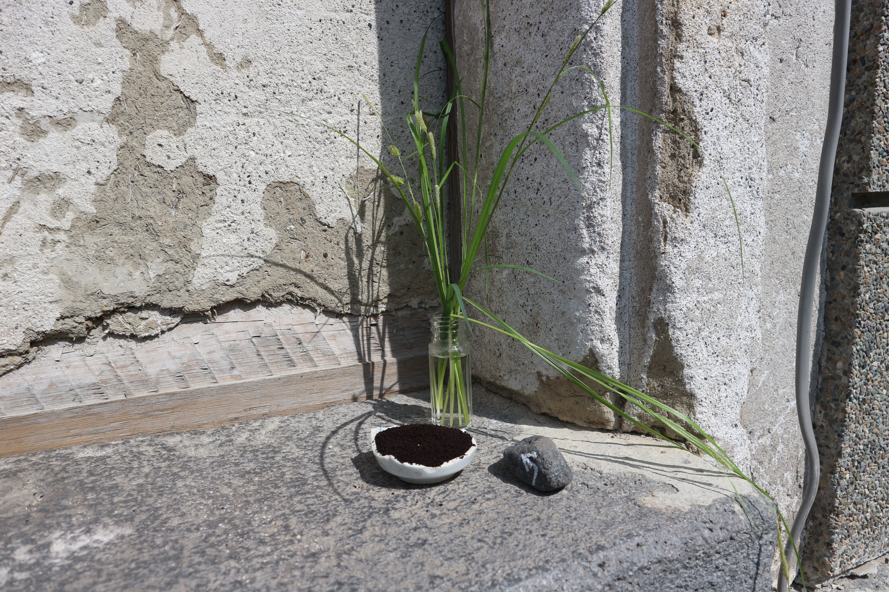 ガラス作家田中恭子さん製作のガラスの器を使い、珈琲ユニットLPACKにより「水だし珈琲」メーカーの装置が蔵の中にセットされています。