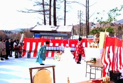 昨年までは、この後、アルプホルンの演奏、子どもの寒中太鼓、抽選会がありましたが、今年は神事とイベントを分け、イベントは12月27日(土)に行われるそうです。