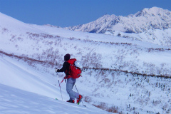 乗鞍岳は、山頂付近で夏まで滑れる環境にあり、テレマークで山スキーに登る方も多く、ゲレンデでの滑走練習に訪れる方の割合も他のスキー場より多いようです。