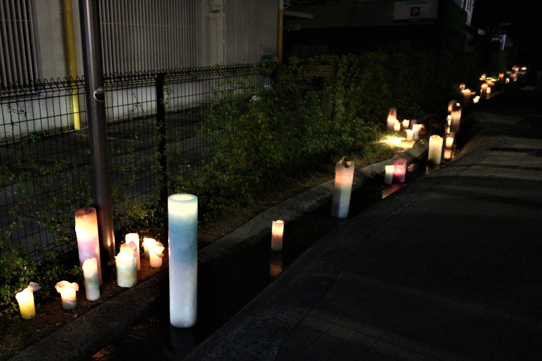 水路では、市内在住のキャンドルアーティストによるインスタレーション