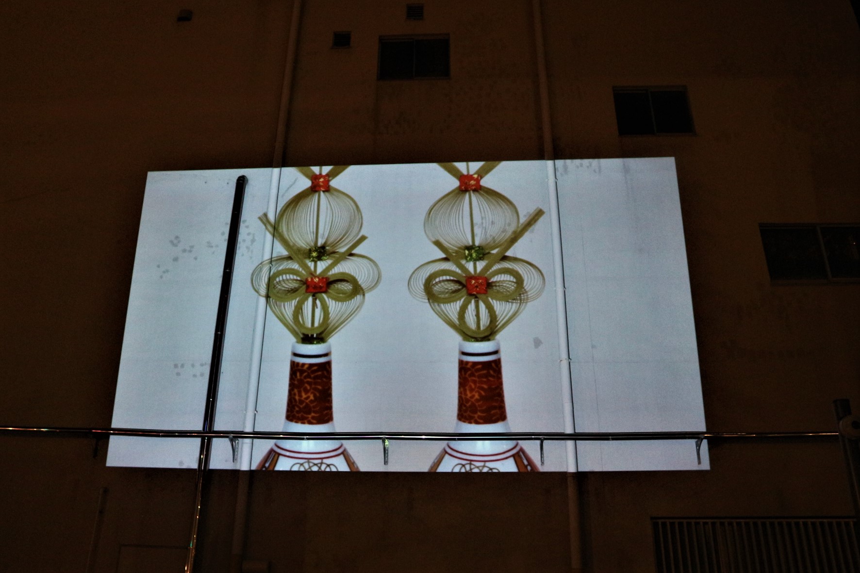 壁には御神酒の口が大きく映し出されたプロダクションマッピング