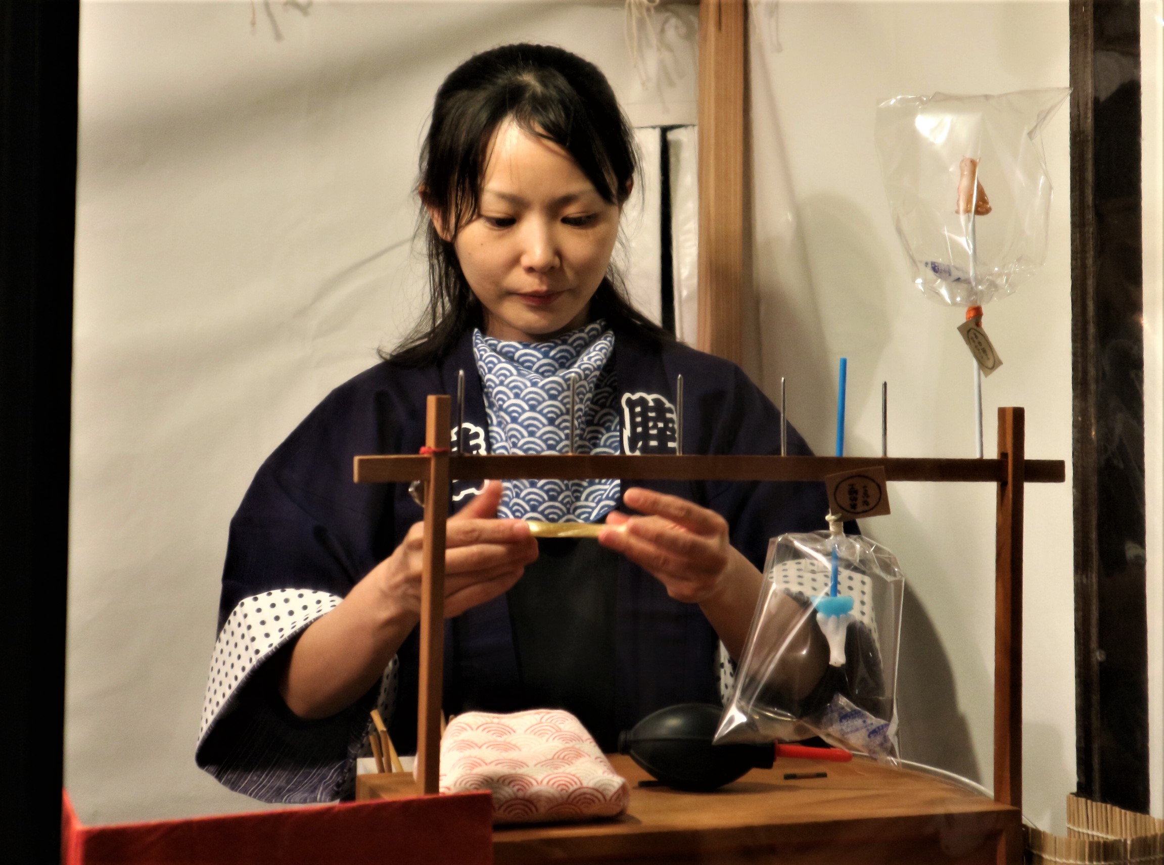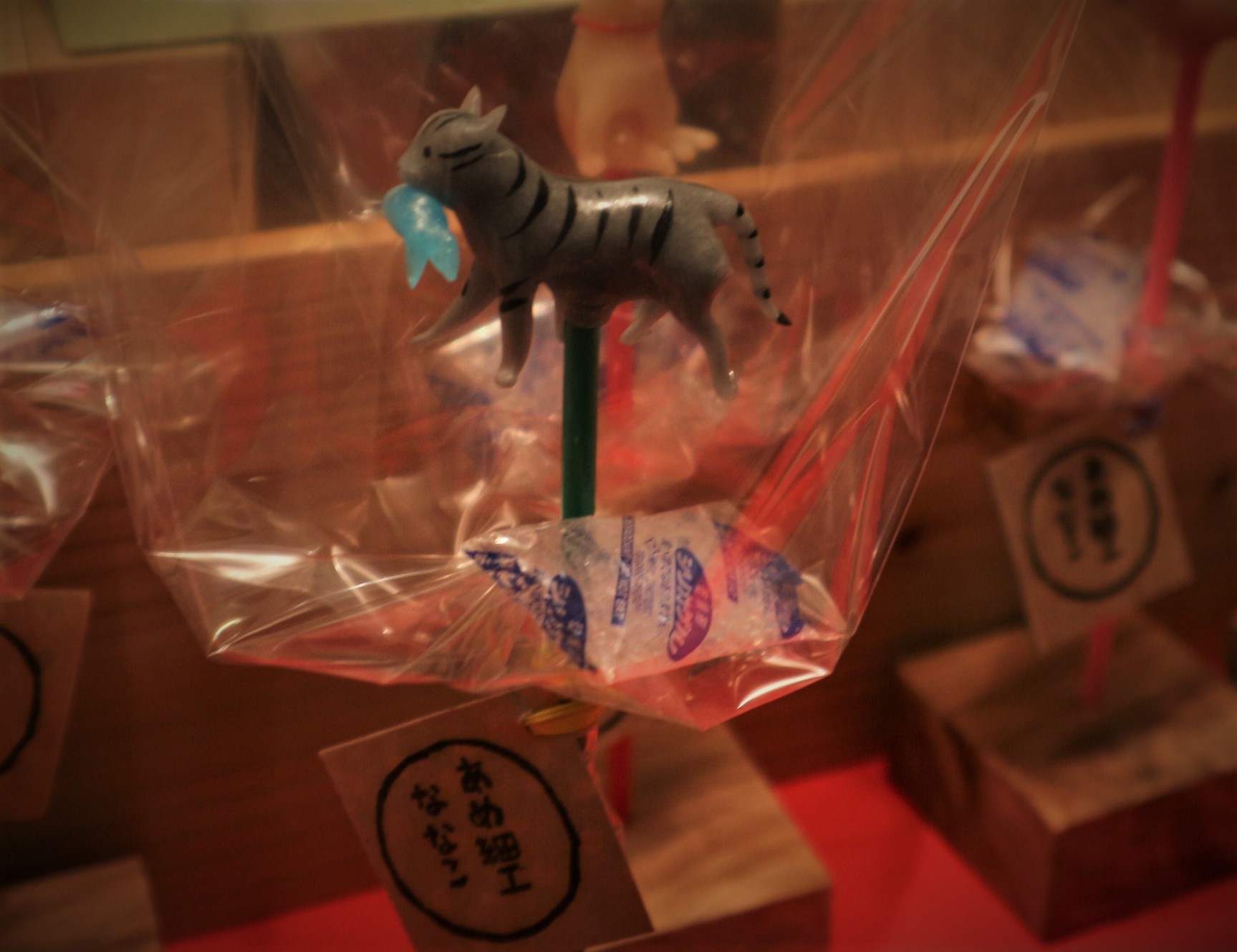 飴細工のお店は、子供に大人気 とても食べてしまうことなんか出来ないかわいい飴を買った子供が嬉しそうにしていました。