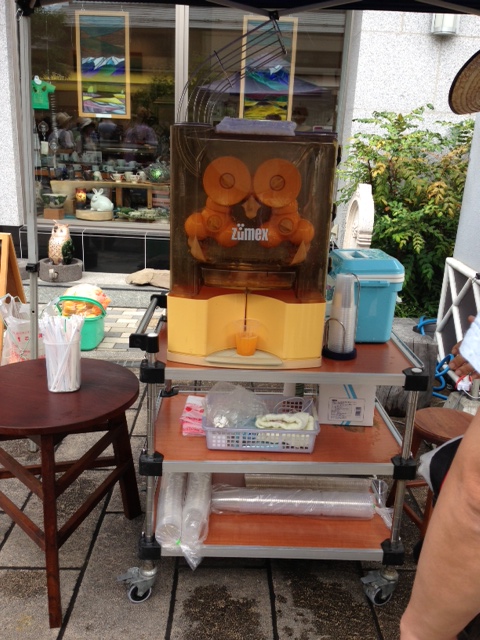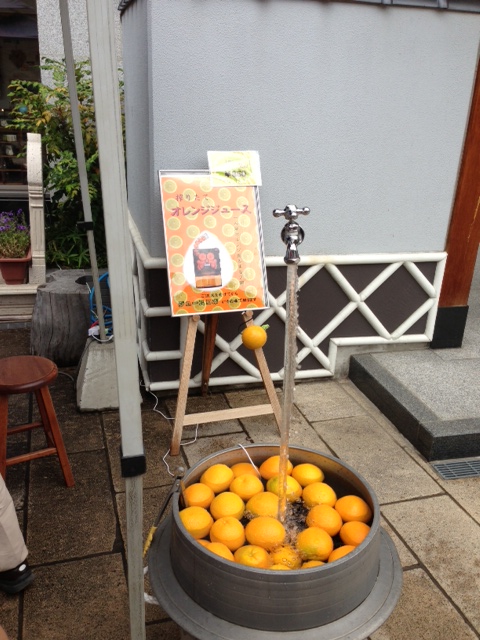 久しぶりにナワテ通りを歩きました。人だかりの中、何だかとっても良い香りがしていました。スペイン製のとっても高価なマシーンだとか・・・、だからカリフォルニア産のオレンジだと時々ひっかかるんだよ! まさしく100%オレンジ果汁のジュースはとっても美味しかったです。