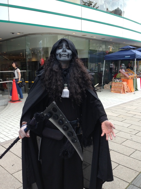 見かけは、ド迫力でしたがとても礼儀正しい”フェイスぺインター★ミホウ”さん。暑さを感じさせない、不思議な空気を纏っていました。 それでもさすがに、ちっちゃい子供はお母さんにしがみついていました。