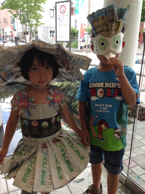 7月14日(日)まつもと街なか大道芸 3rd を楽しむ大勢の人で、松本の街はとても賑わいました。松本パルコ南側の花時計公園で開催された”新聞女さんワークショップ”
