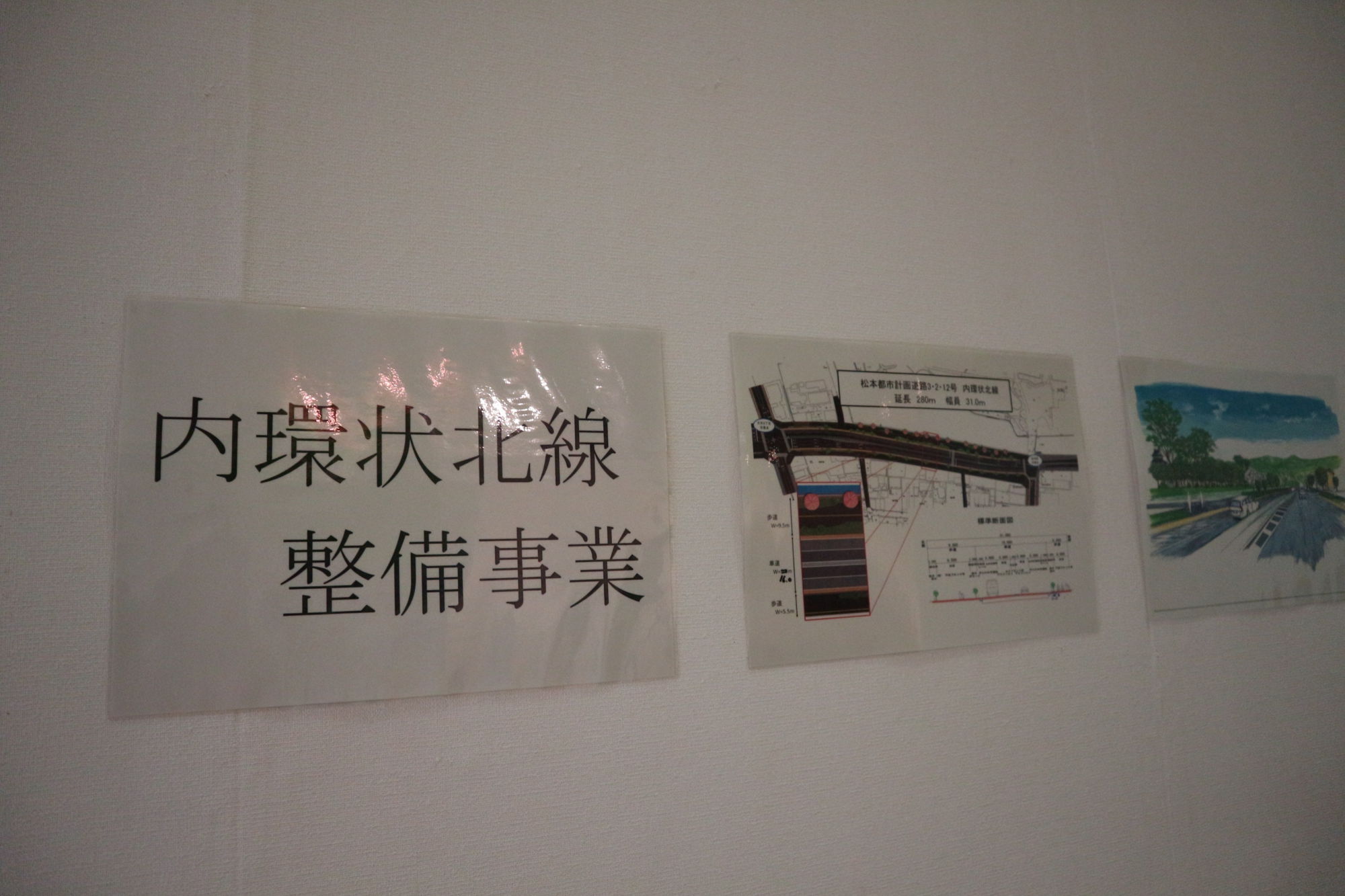 内環状北線整備事業に伴い、道路の幅員構成や道路空間の活用について、松本市景観審議会に諮りながら景観検討をおこない、完成イメージ模型を作成されたそうです。