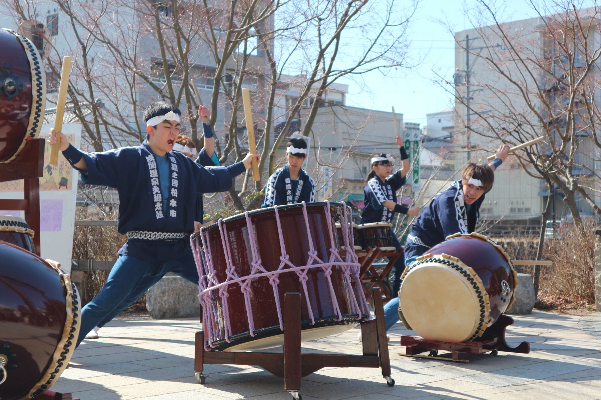 イベント当日は、寒い中でも日差しが暖かく大勢のお客さんが太鼓の演奏・伝統芸などを楽しんでいました。