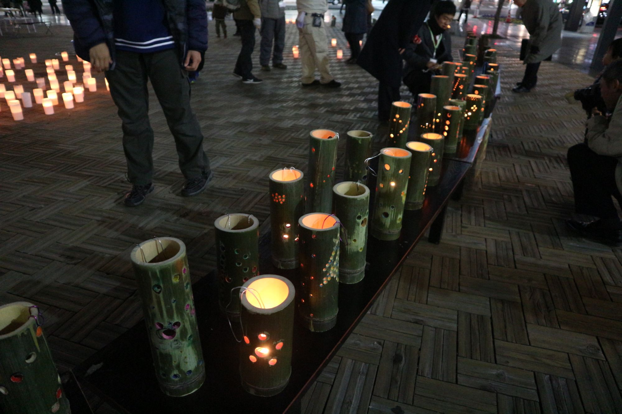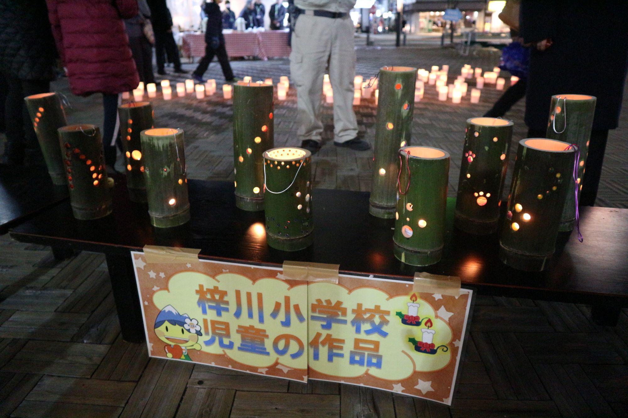 竹を使った手作りキャンドルは、「梓川小学校」の児童の作品です。