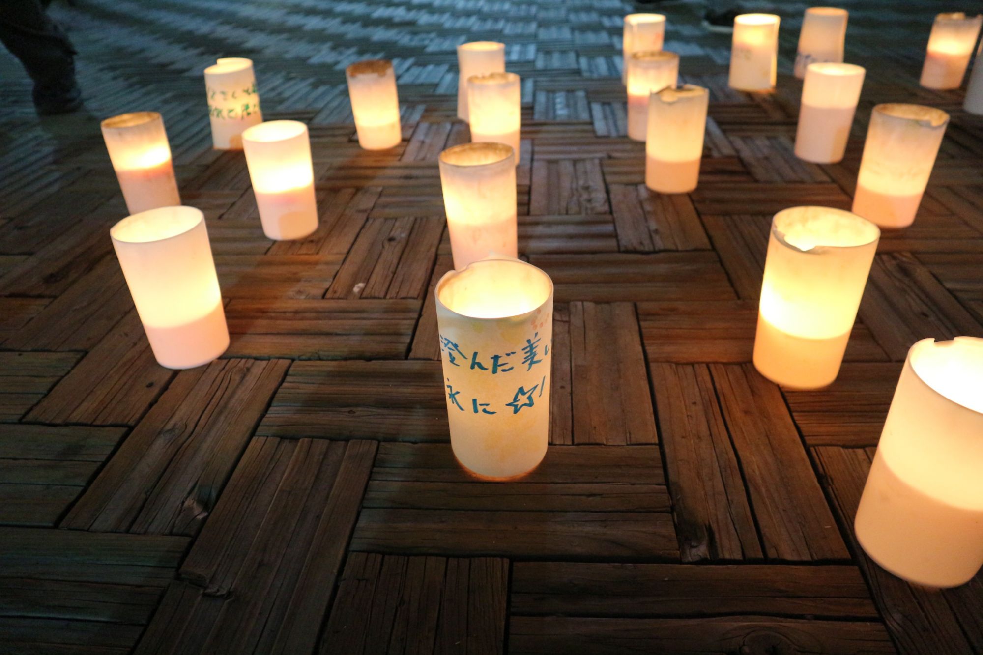 紙にメッセージを書いて設置されているキャンドルにカバーをすると、先着50名に手作りの蜜蝋ろうそくをもらえます。