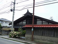 この間、松本でも展覧会をやっていたプロダクトデザイナー・柳宗理さんのお父さん、柳宗悦氏も絶賛したという宿場町です。通り沿いにはこの地域の伝統的な本棟造りが多く残り、また玄関先には屋号が掲げられていました。これは確かに素敵です。