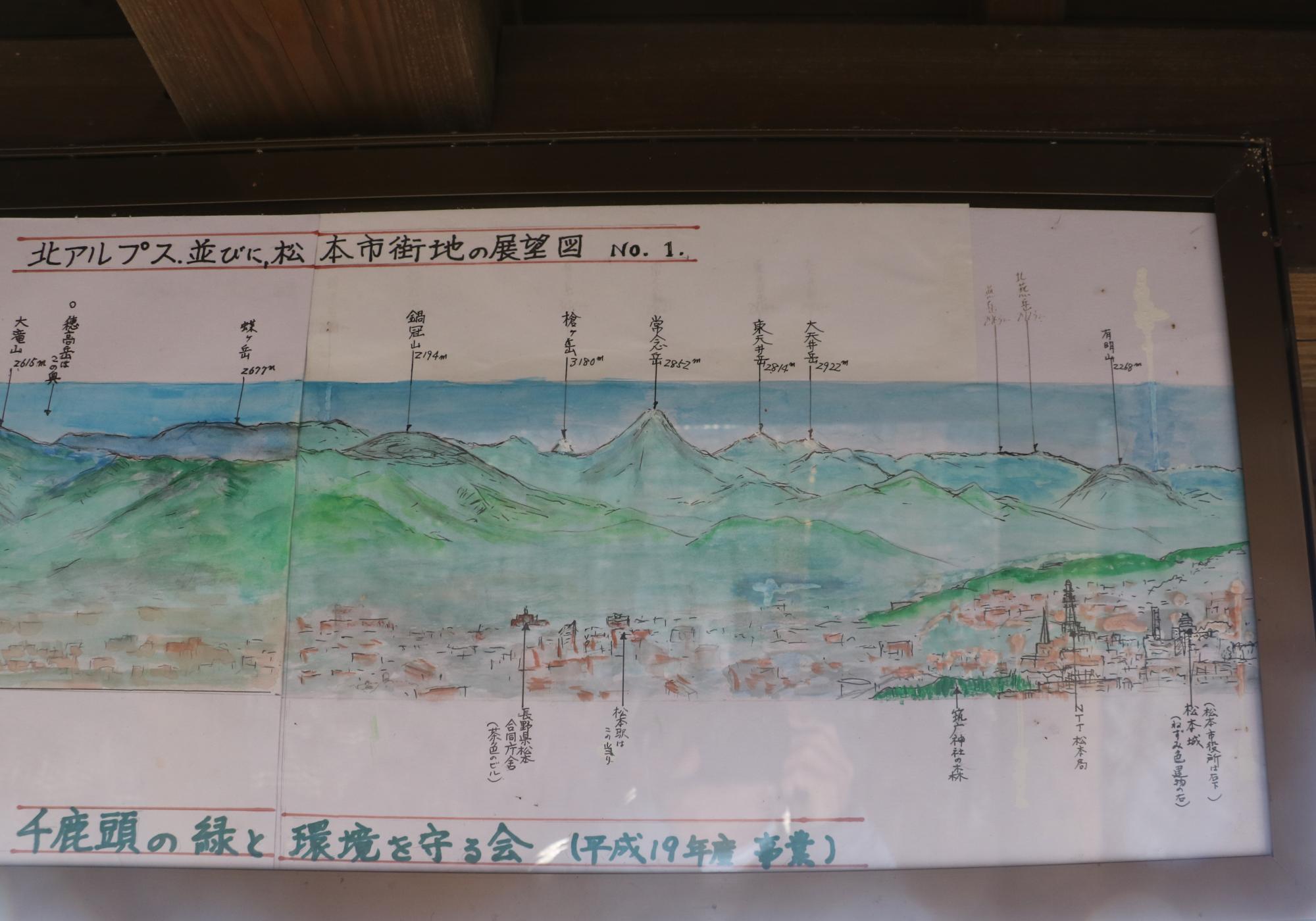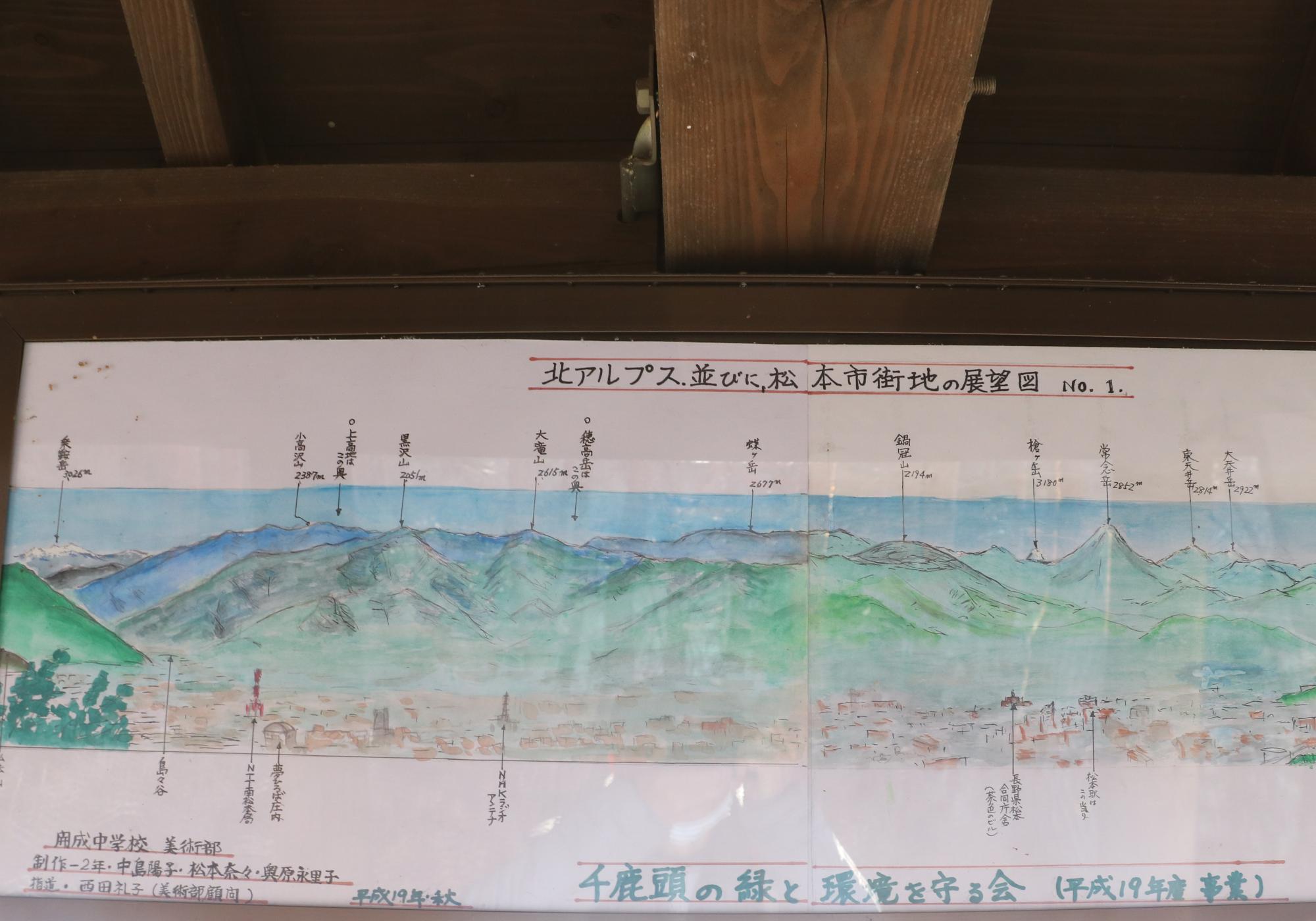 千鹿頭山森林公園展望台から、北アルプスを展望、市内は早春の風!