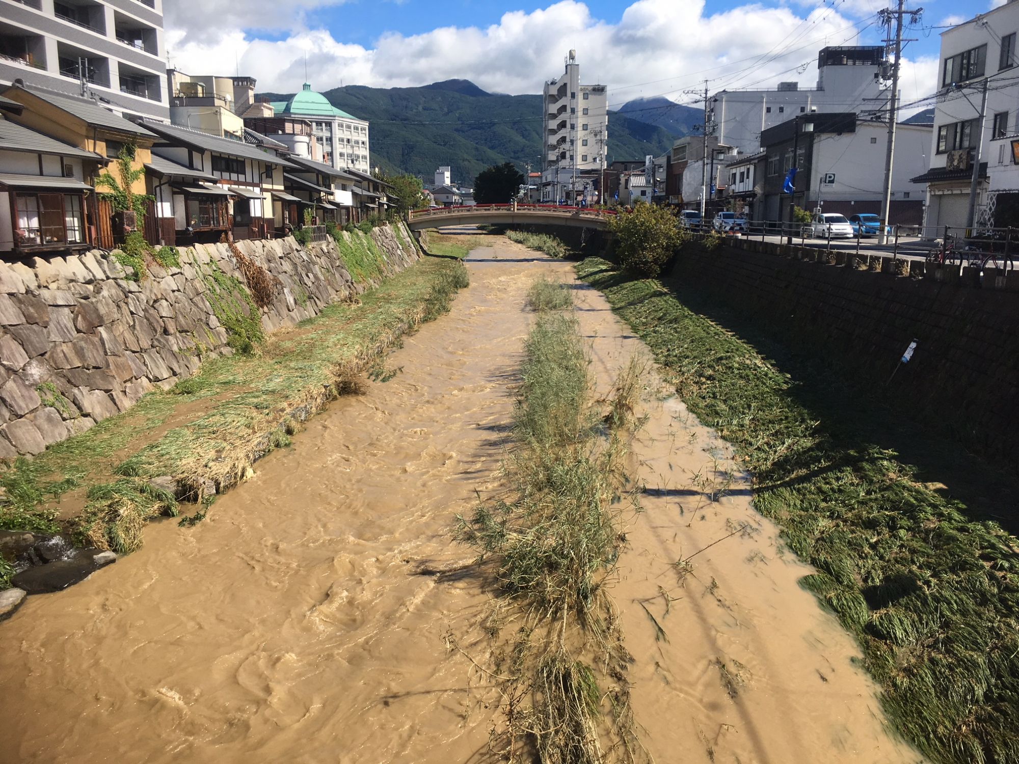 台風19号一夜明けた松本市街地の様子