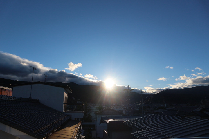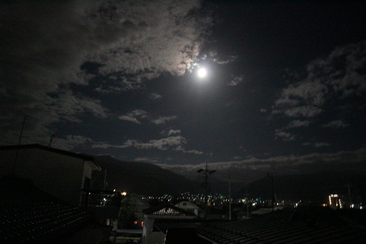 朝は、雲の合間から朝日が昇り、夜は大きな月が輝いていました。