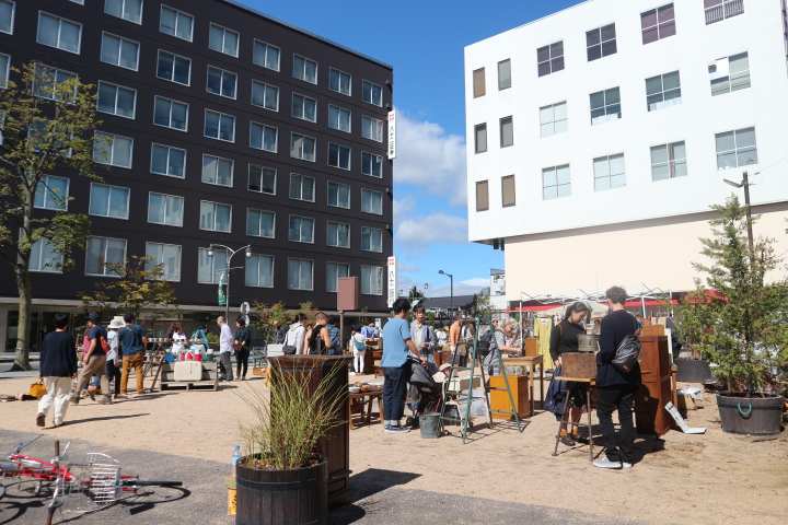 桝形跡広場で開催の古市も快晴なお天気の下大勢の人で賑わっていました。
