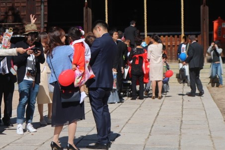 お日柄がいいのでしょうか。早めの七五三参り、お宮参りの家族連れで賑わっていました。