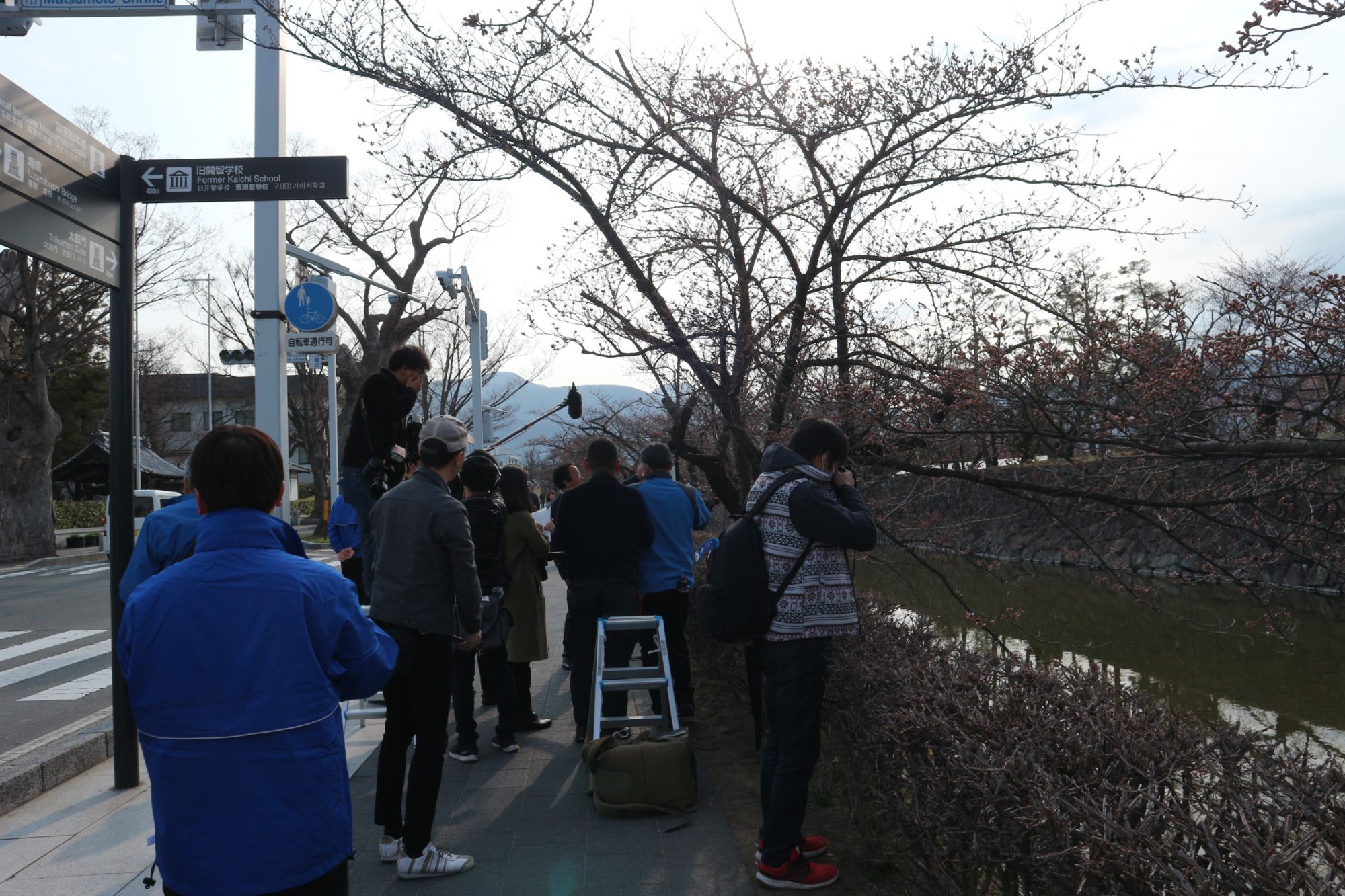 国宝松本城外堀北側の標本木で開花が確認され、松本城管理事務所の手島学所長が開花を宣言しました。