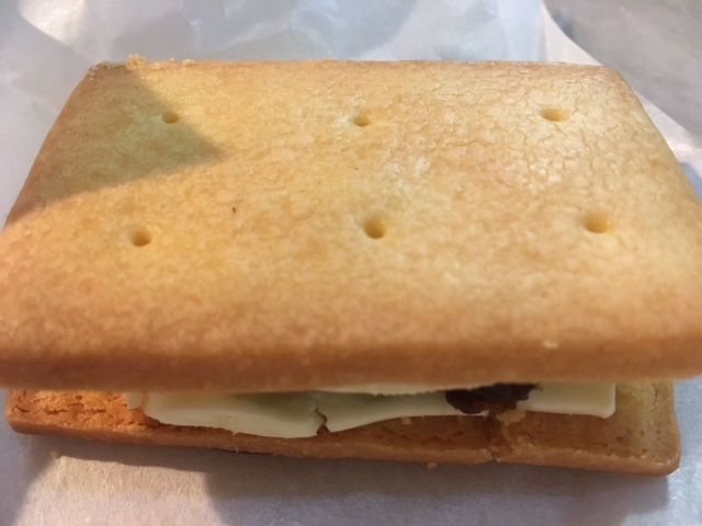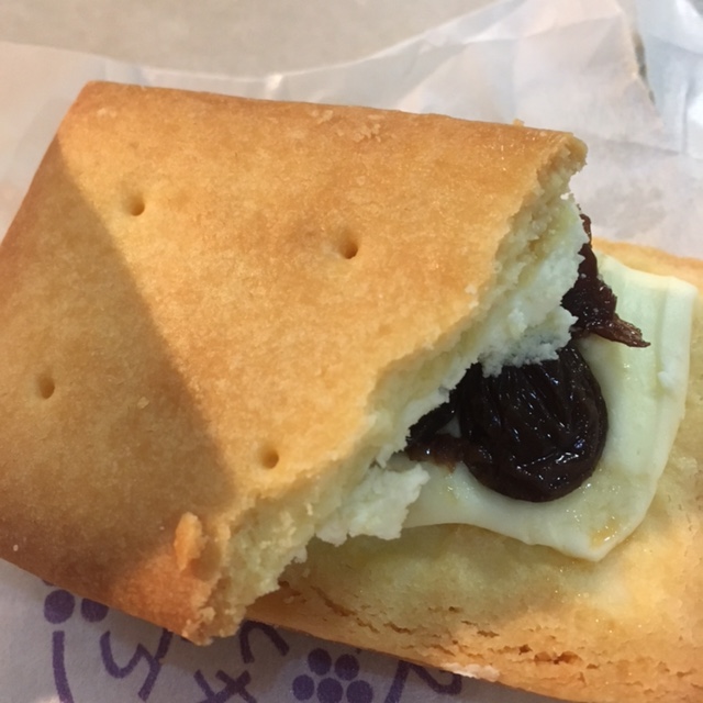 クッキーの程良いサクサク感、塩味が効いたクッキー生地とサンドされたバタークリームとラムレーズンの相性が最高に美味しい大人のお菓子です。