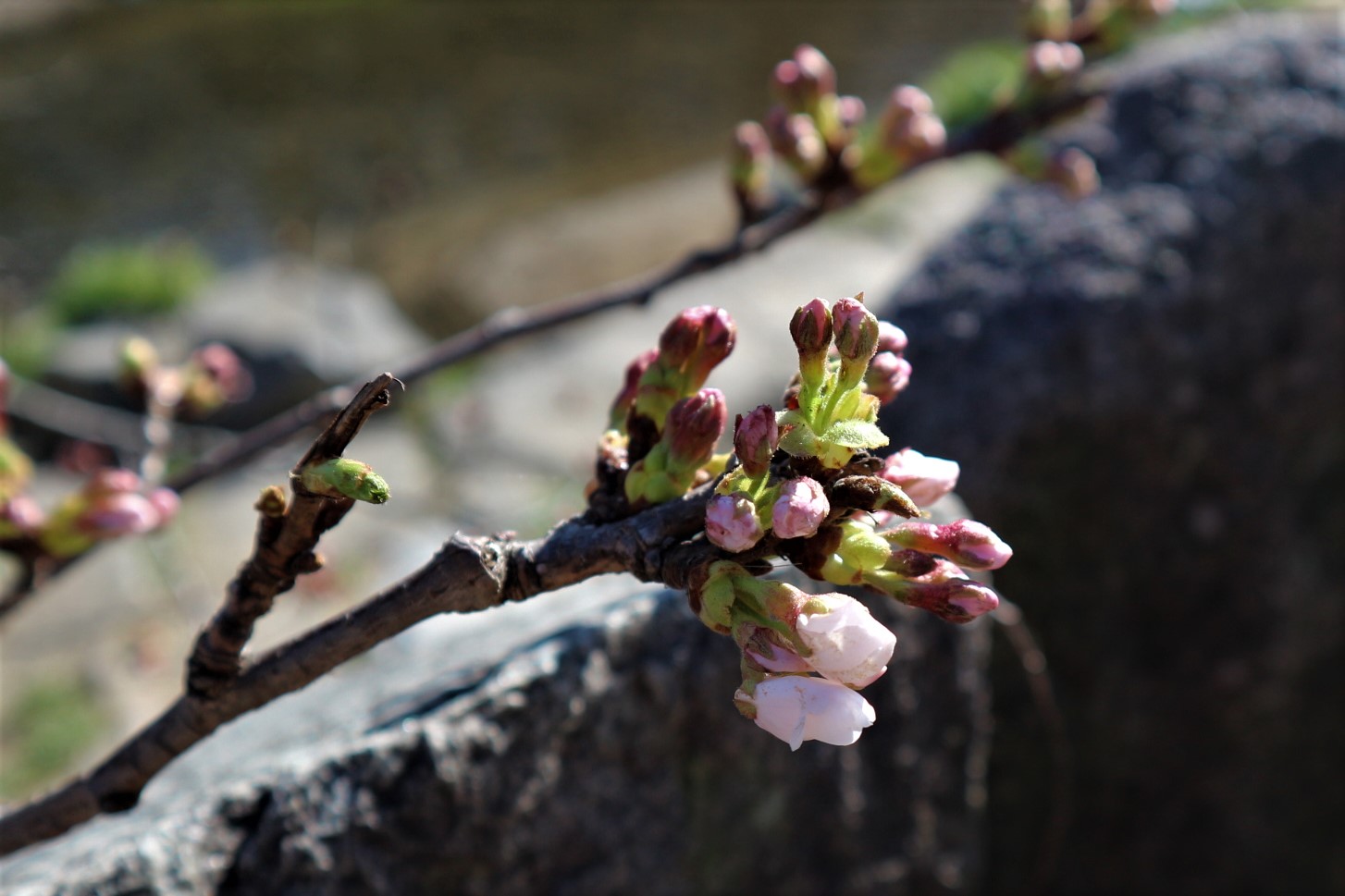 女鳥羽川水辺のソメイヨシノが開花しました!
