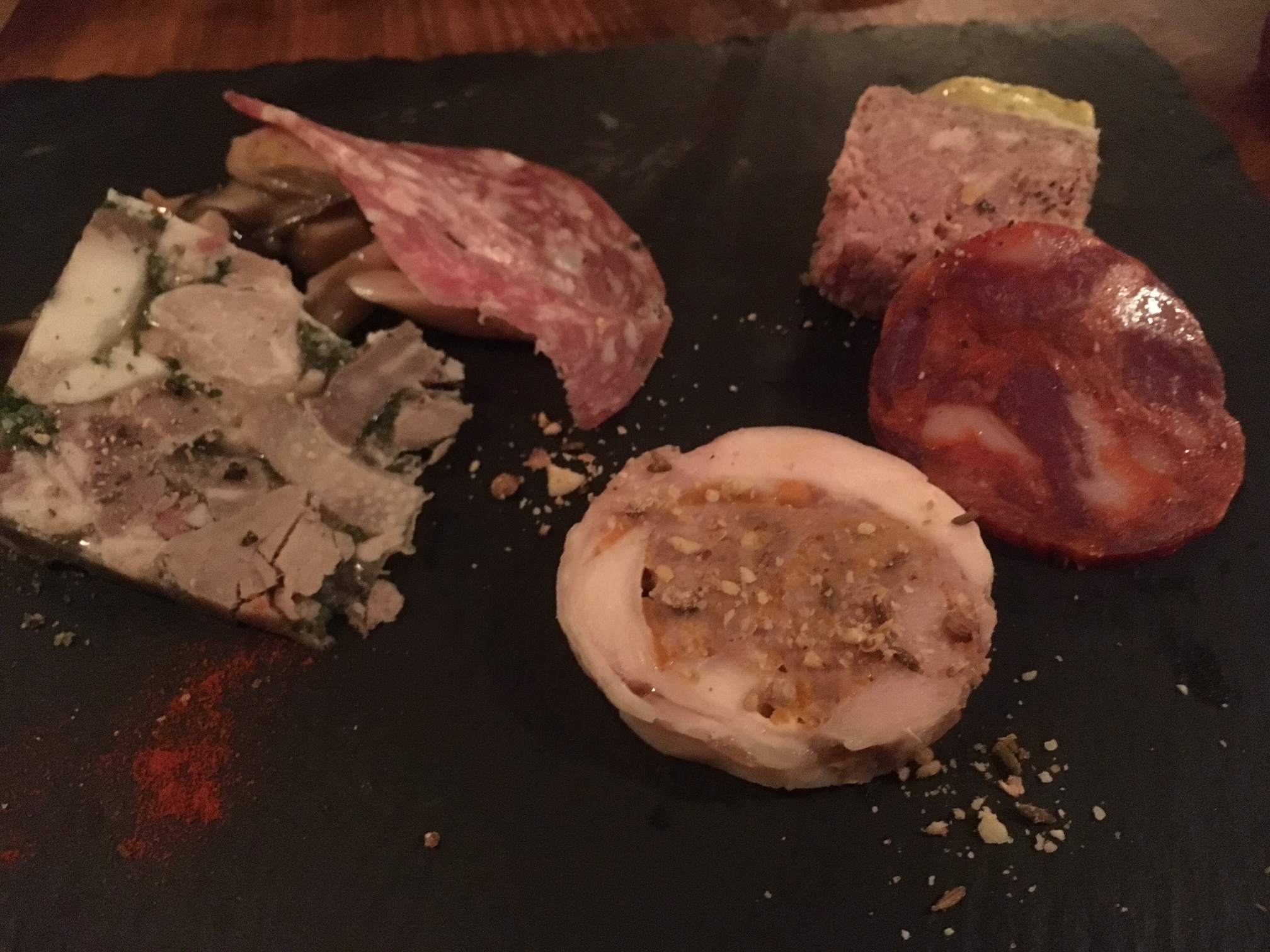 2皿目は、サラミ・自家製パテ5種の盛り合わせ
