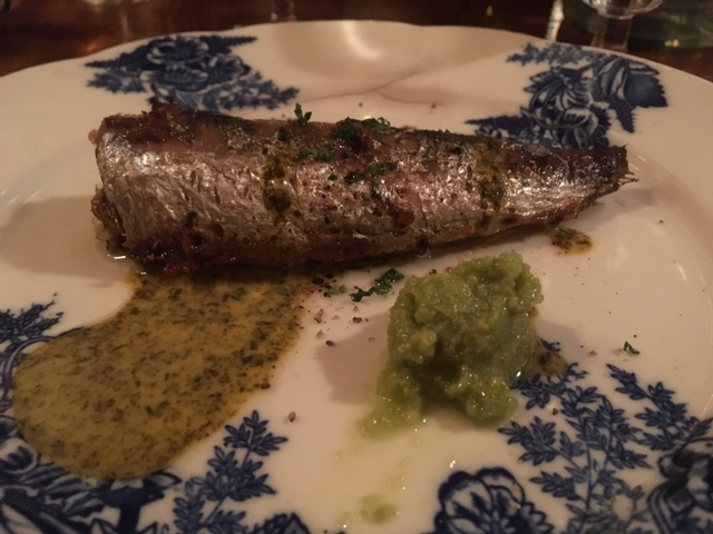 バジルソースのグリンが美しい 8時間煮込みましたと言われた鰯さん 骨まで美味しい~
