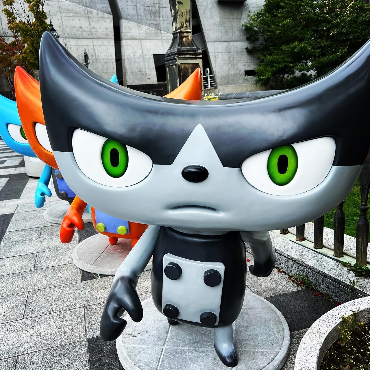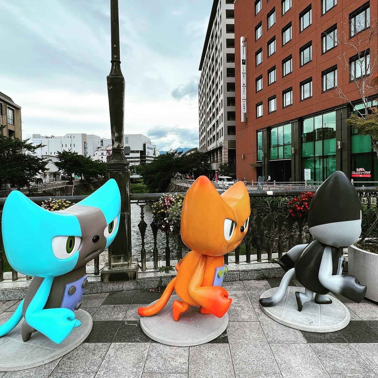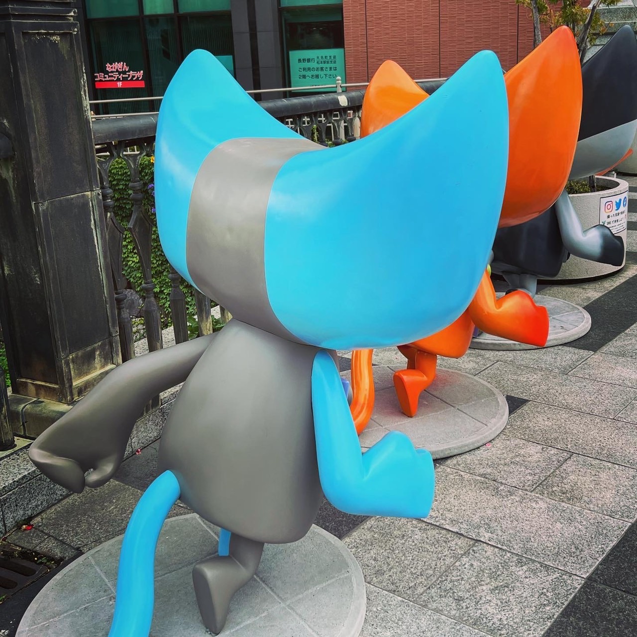 展覧会のために山崎監督が描き下ろした応援キャラクター「Y-cat」が松本市の中心市街地に出現しています。