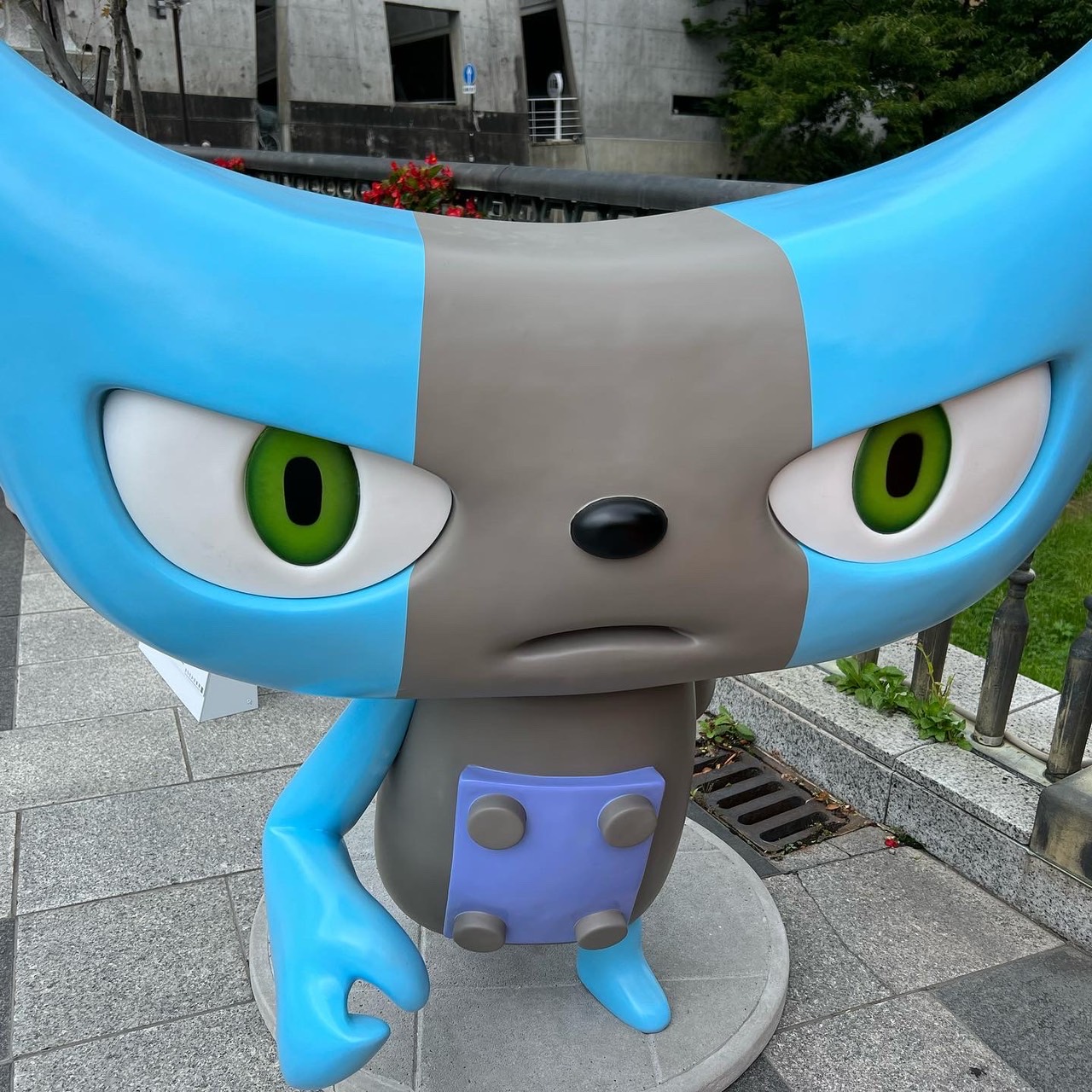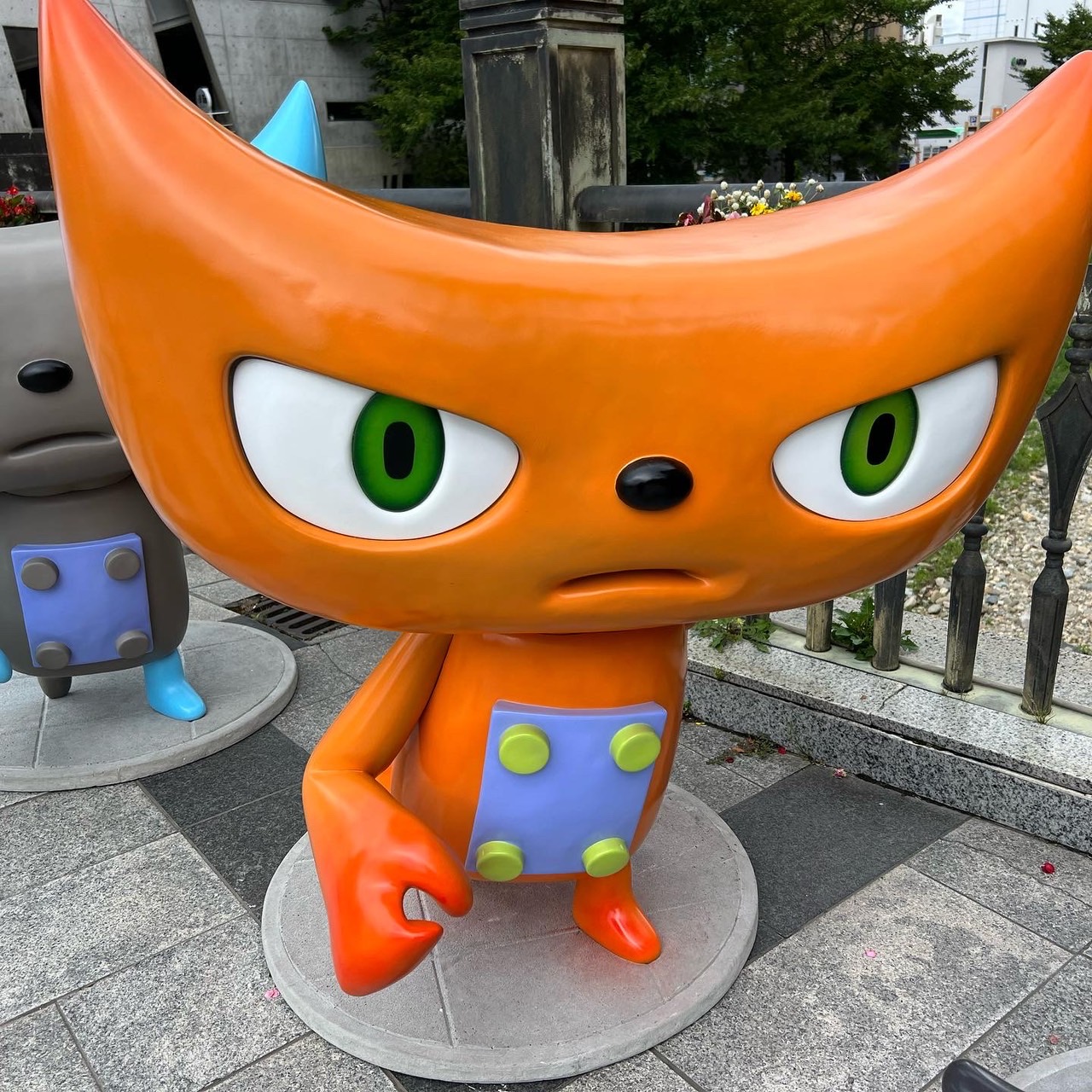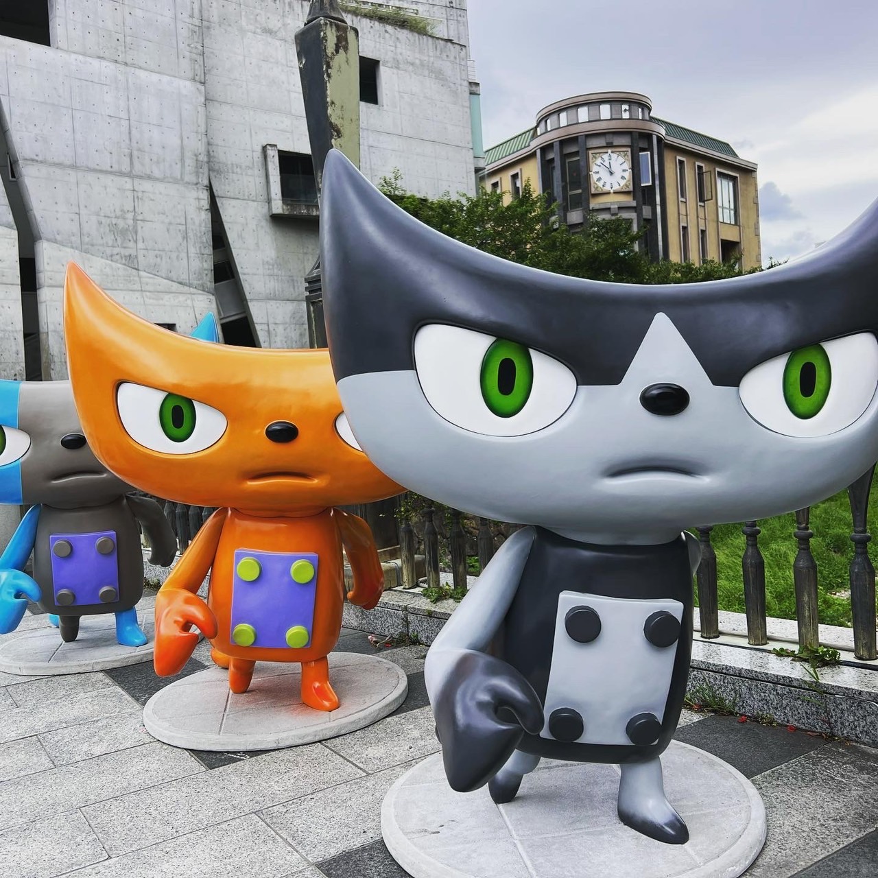 展覧会のために山崎監督が描き下ろした応援キャラクター「Y-cat」が松本市の中心市街地に出現しています。