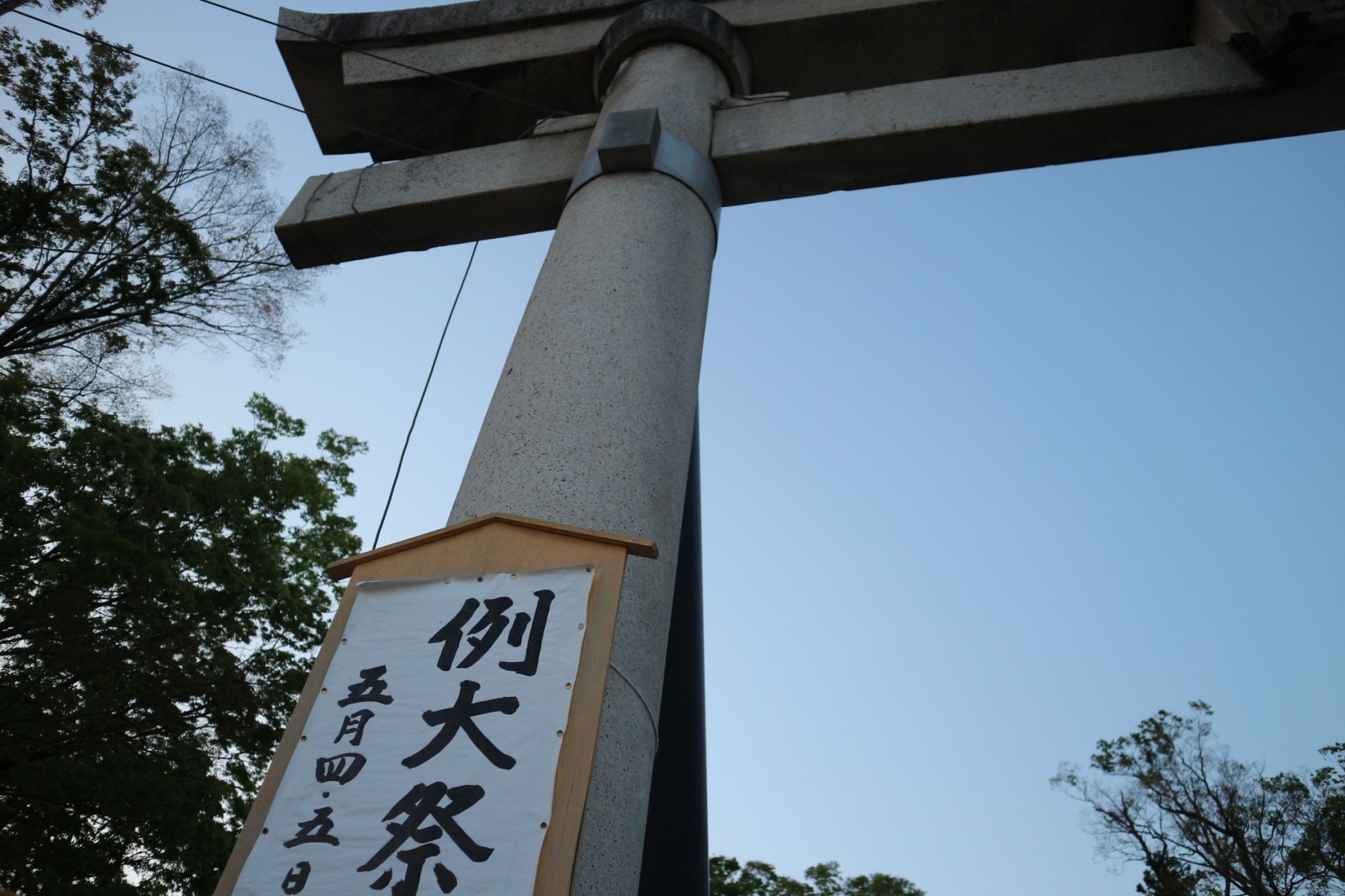 明けて本祭5日 五月晴れの朝 境内の屋台はすっかり片付けられていつもの静かな岡宮神社でした。