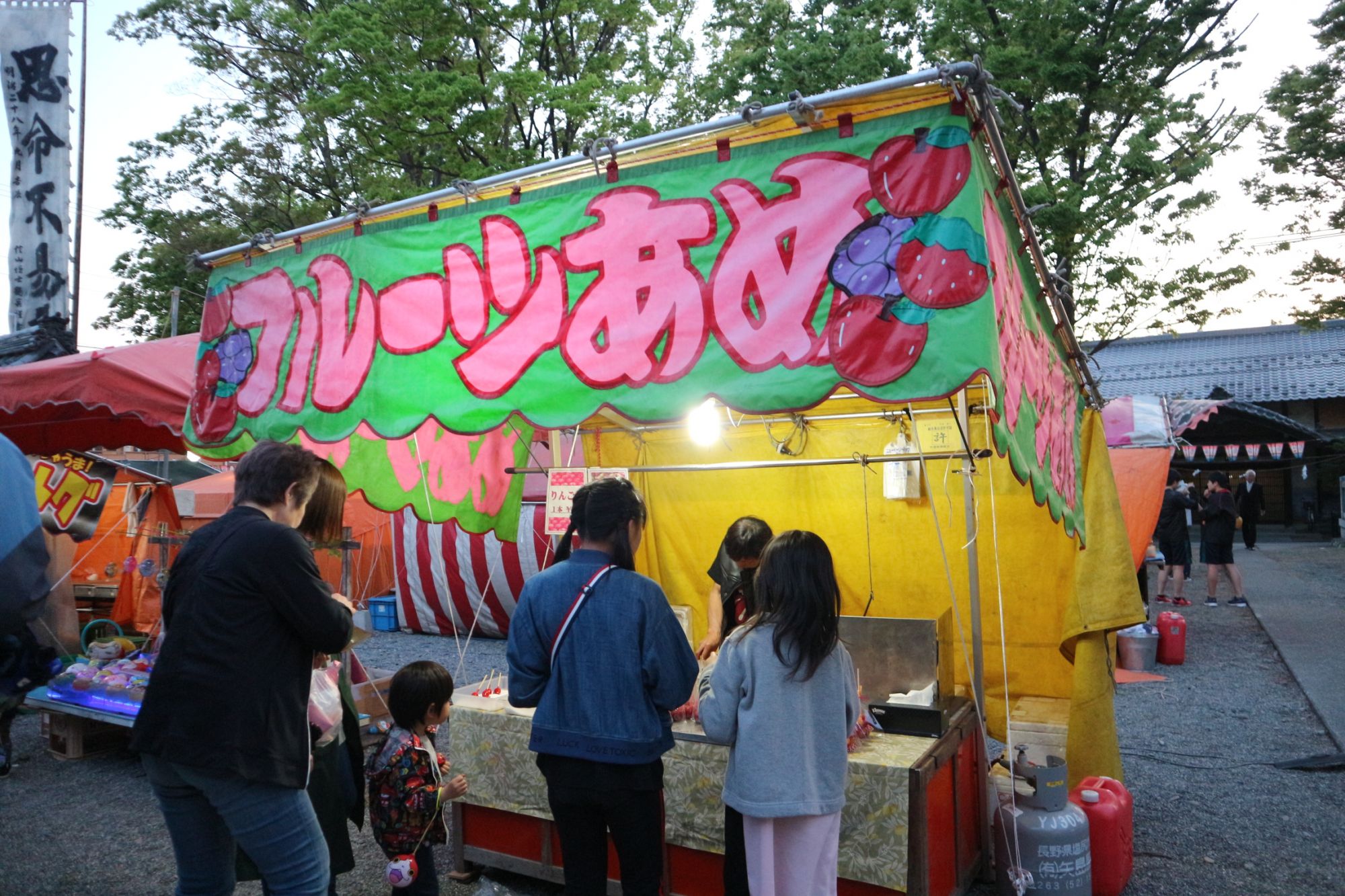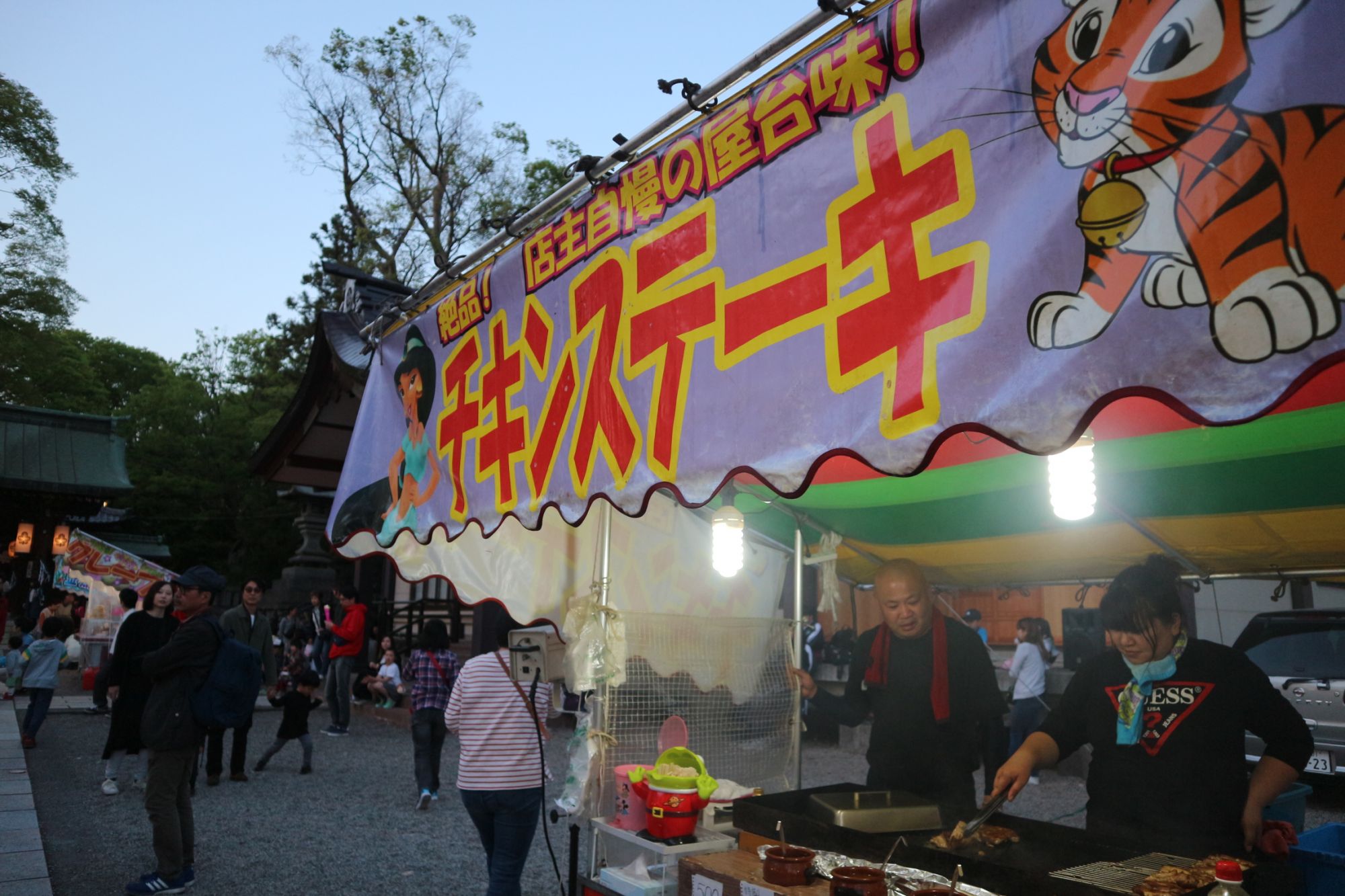 チキンステーキ、フルーツあめ、タコ焼き、いか焼き、チーズドック、お祭りの定番から最近の人気の屋台がたくさん出ています。