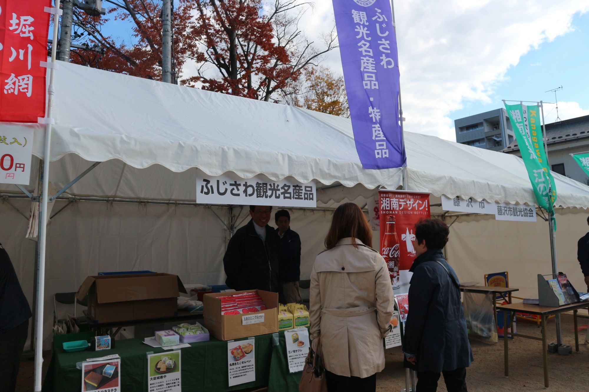 桝形跡広場で松本市姉妹都市「藤沢市」の名産品など販売
