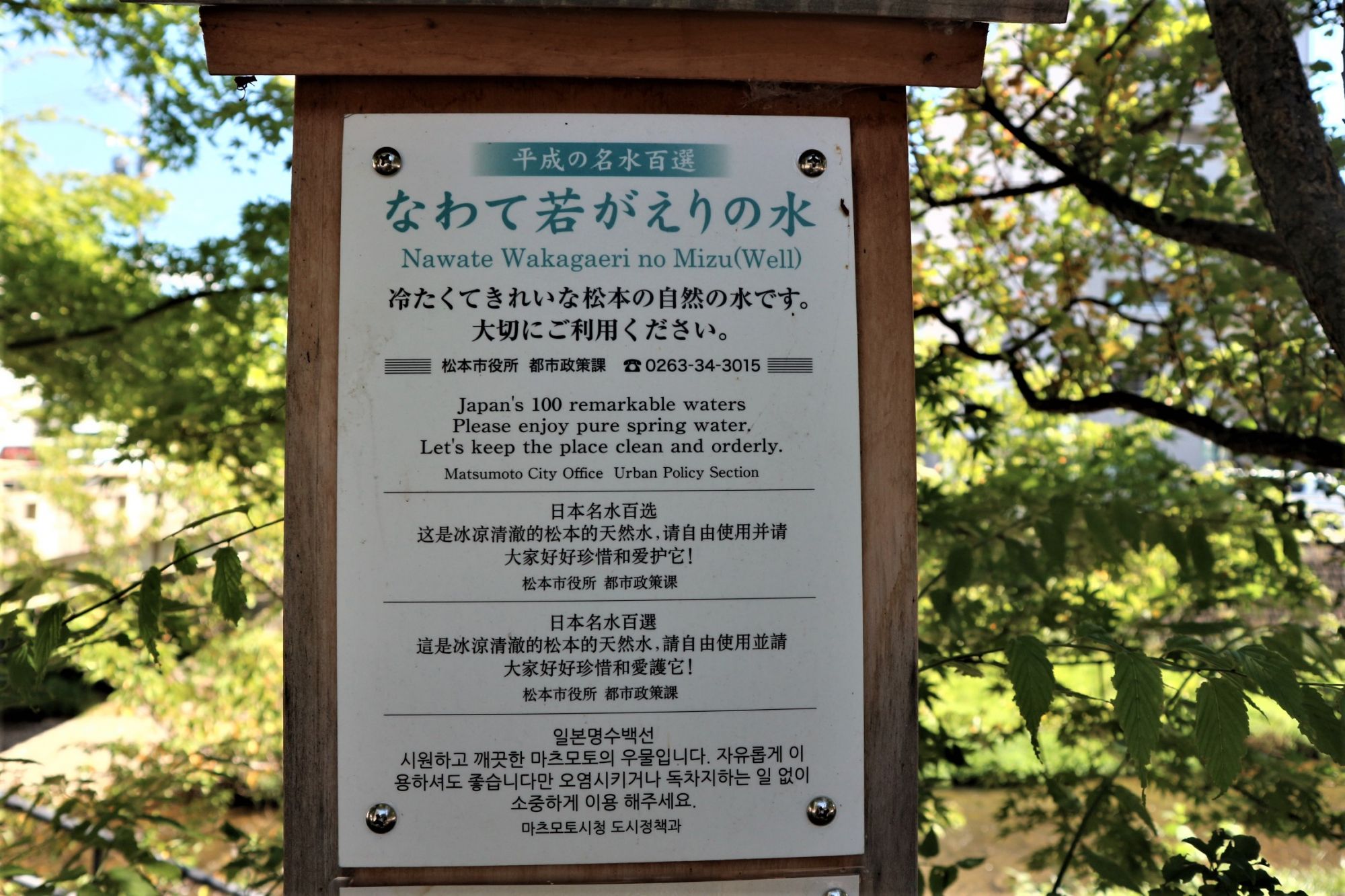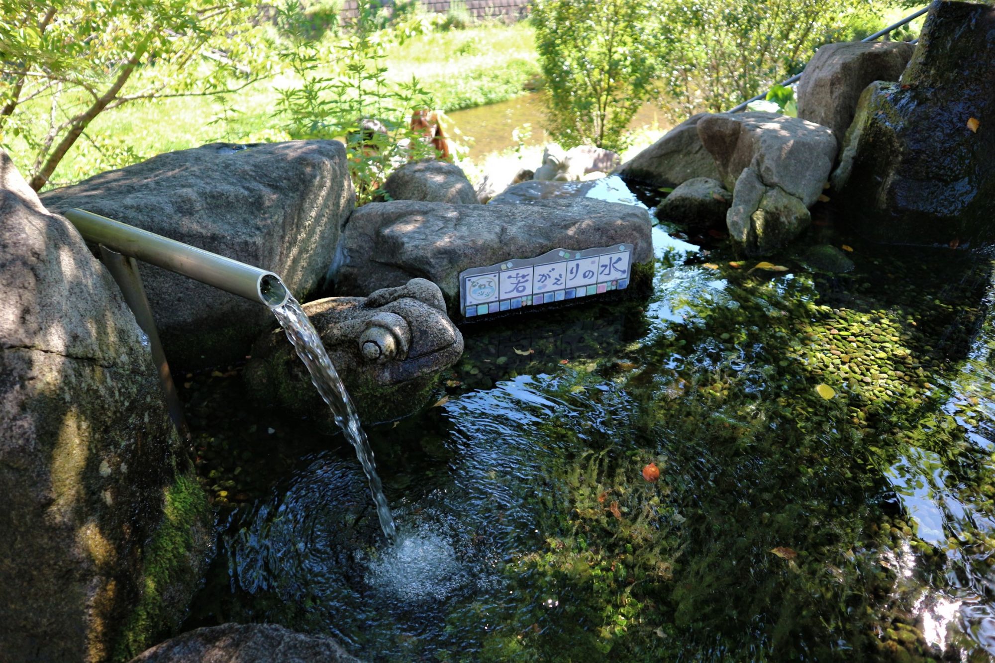 四柱神社の前にある「若返りの水」井戸水なので冷たい水が流れています。