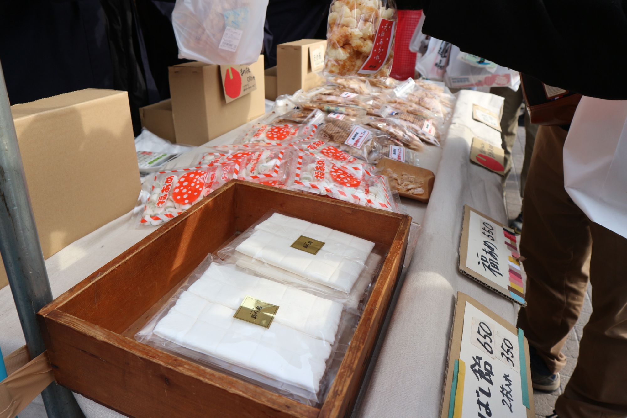 信毎メディアガーデン前庭では、松本の飴屋御三家の二つ「新ばし飴」「山屋」の2件と物産展が開催!