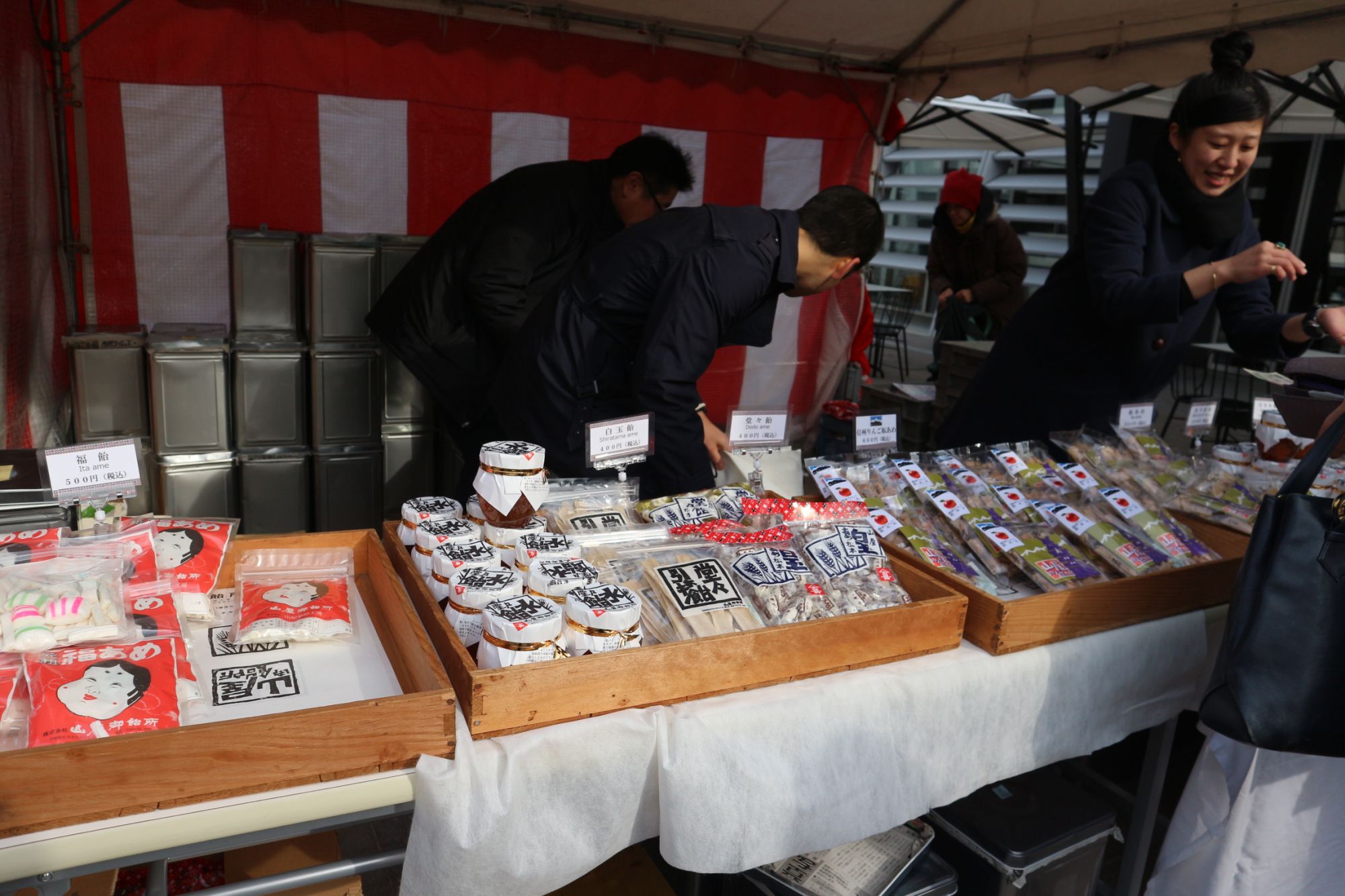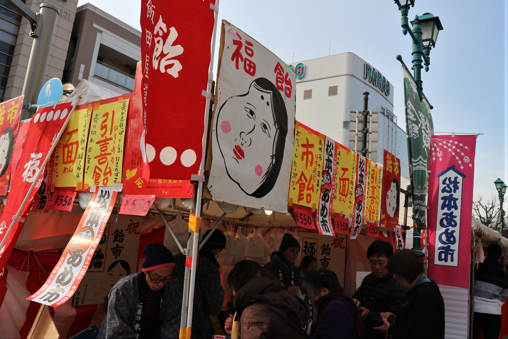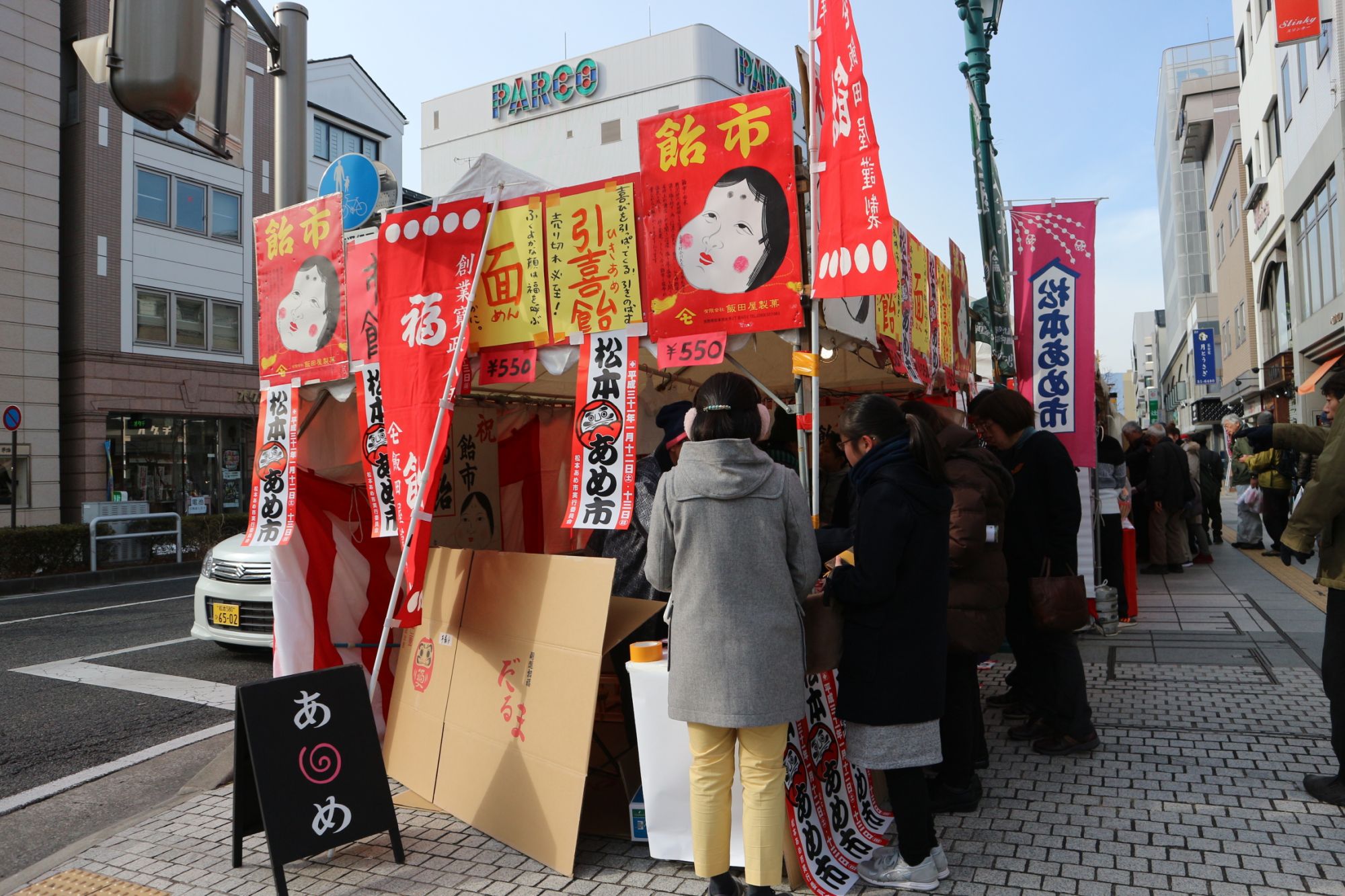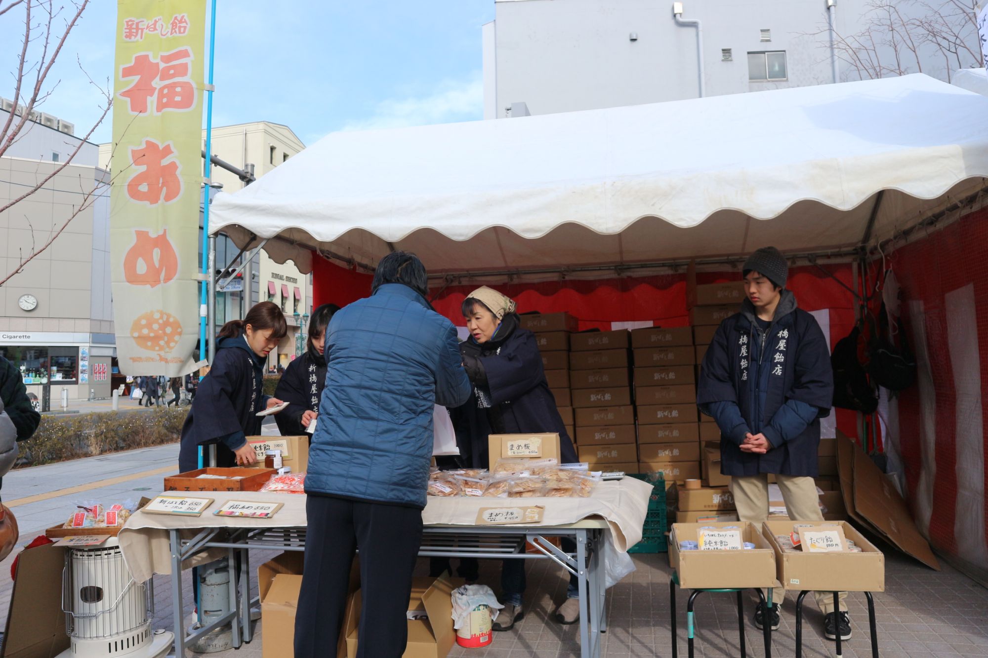 明日は、上杉軍・武田軍に分かれて綱引きを行う「塩取合戦」、「初春抽選会」「時代行列」「太鼓連等の競演」に加え、歩行者天国内の商店街ではさまざまな催しが行われます。