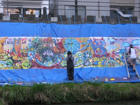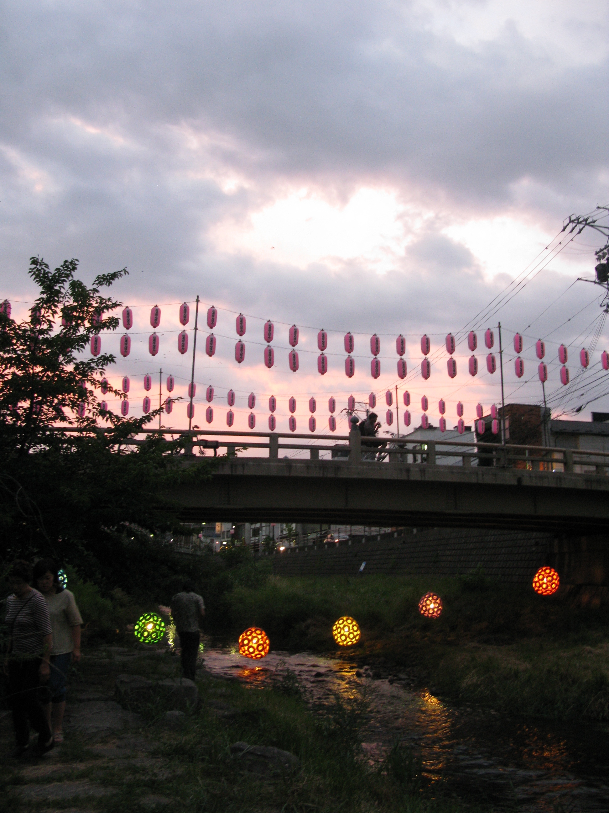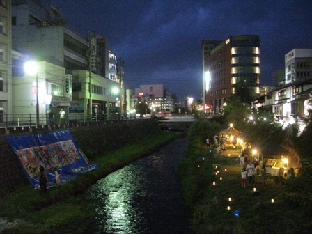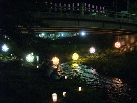 幸橋の下には、茨城大学の学生製作の大きななわザブランプが6個灯され