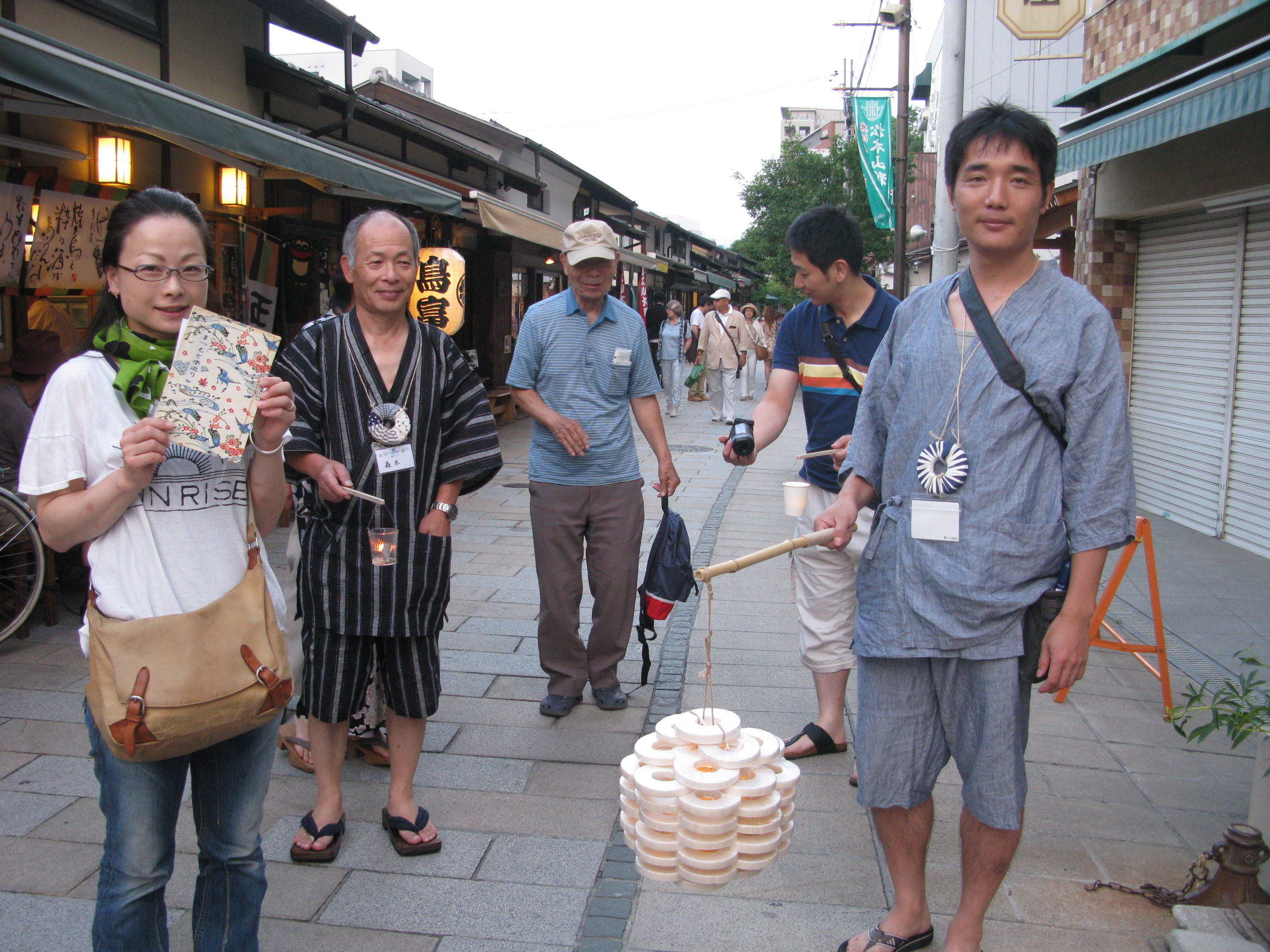 手作りの行燈となわザブランプ行燈を手に、「なわて宵水散歩」ツアーも開催