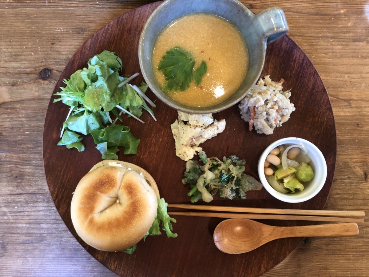 松本の湧水と自家製酵母を使ったもっちりベーグルと、春を待つランチプレート
