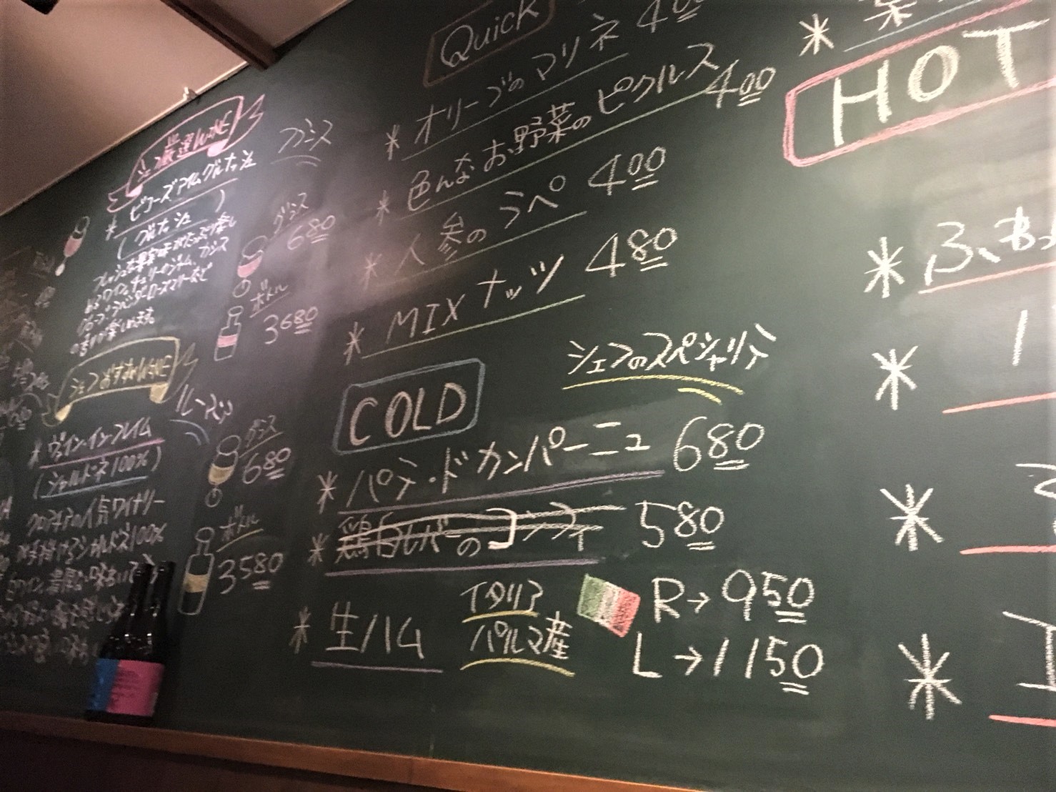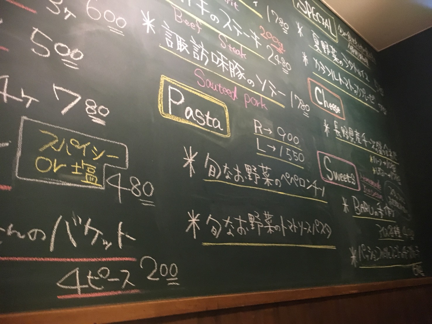 黒板メニューからも食べ物を選べます。