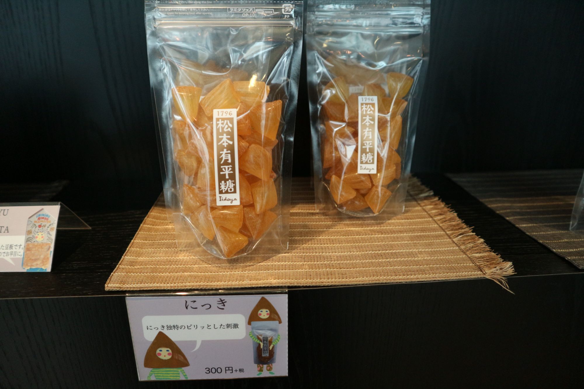 何故「道神面」??聞いてはいませんが、飯田屋飴店さんのスタッフに「ごっこ社」の方がいまして、おそらくその縁かと思います。
