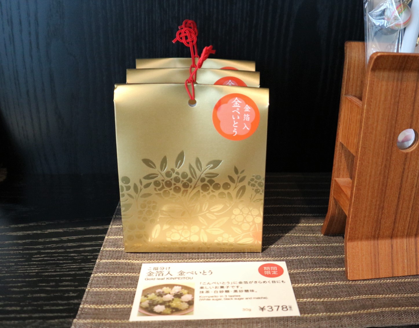 はしごチケットのサービスを頂きました。飴せんべいです。少し崩れているらしいですが、とてもそんな風には見えないのが、飴せんべいは繊細な飴だということが、よくわかります。