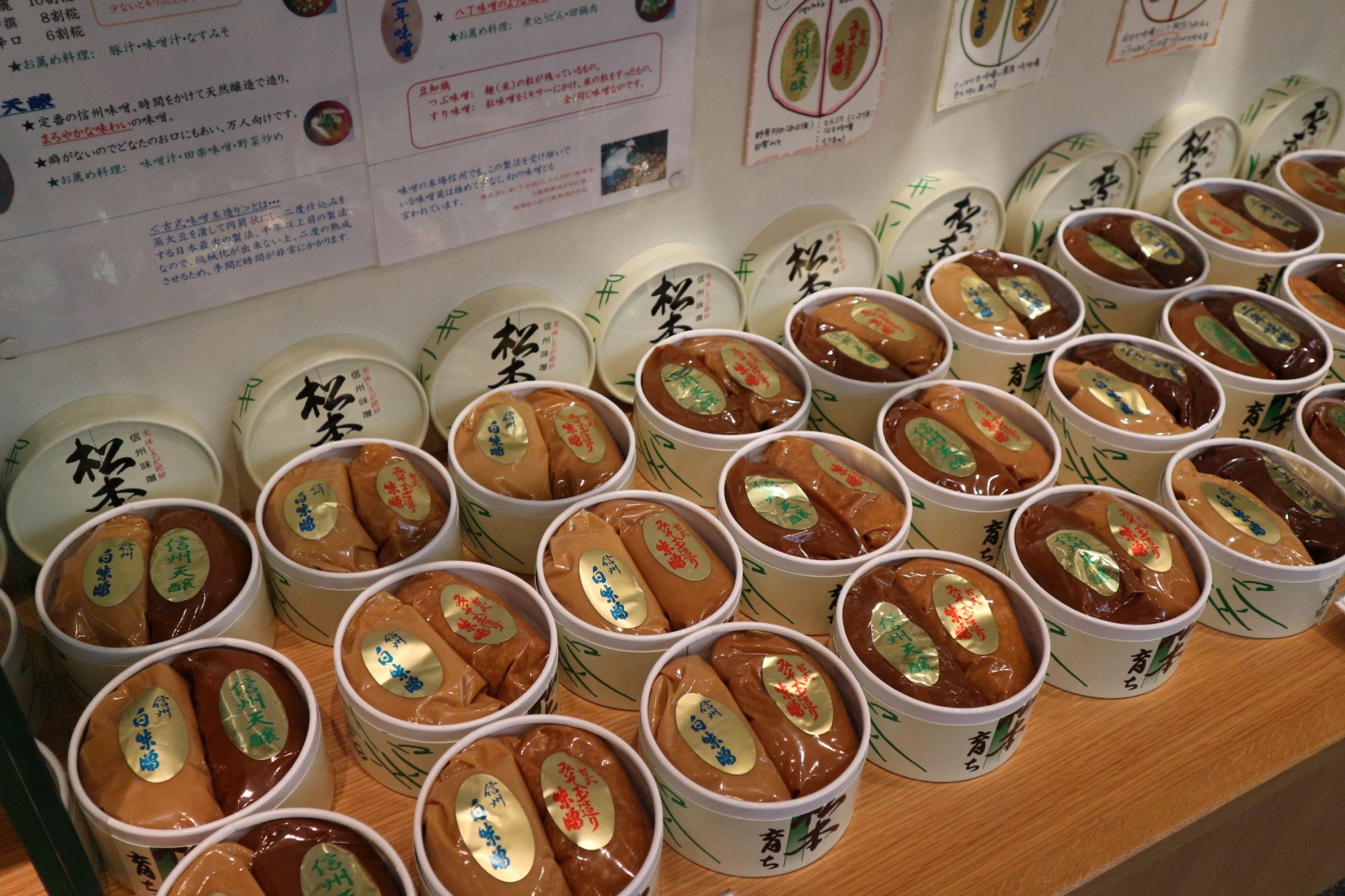 敷地内には松本城の捨て堀の土塁跡が保存されており、四季折々の花と共にお客様に御覧いただいております。秘伝の味噌玉造り味噌の他、各種信州味噌、野沢菜漬、わさび漬など、信州の名産を取り揃えまして、御来店をお待ち申し上げております。駐車場も完備しておりますので、お客様は当店に駐車していただき松本城見物、市内観光にお出かけくださいませ。(公式サイトより)
