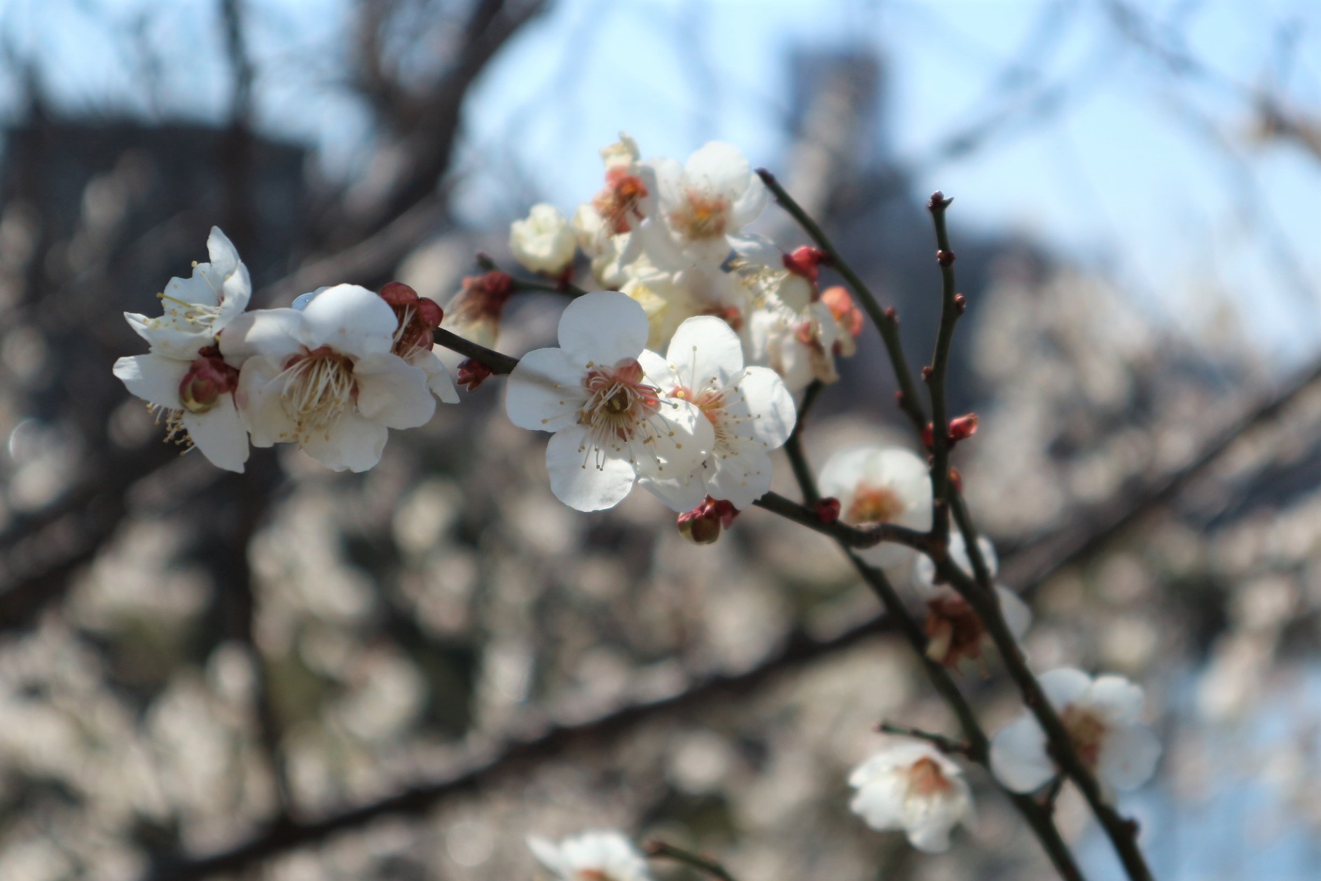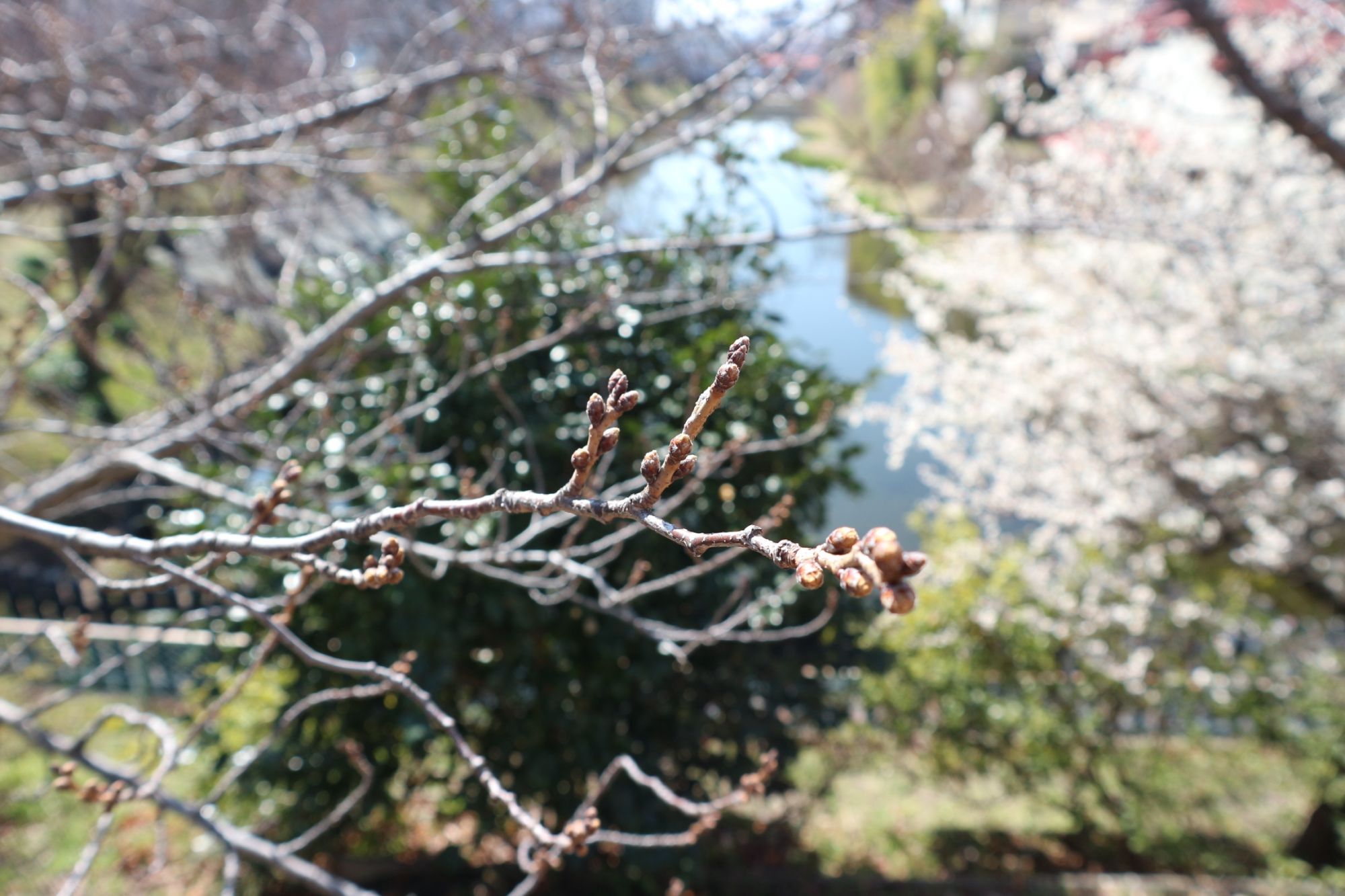 松本スケッチ3月 月・城・梅・桜はまだまだ硬いつぼみ